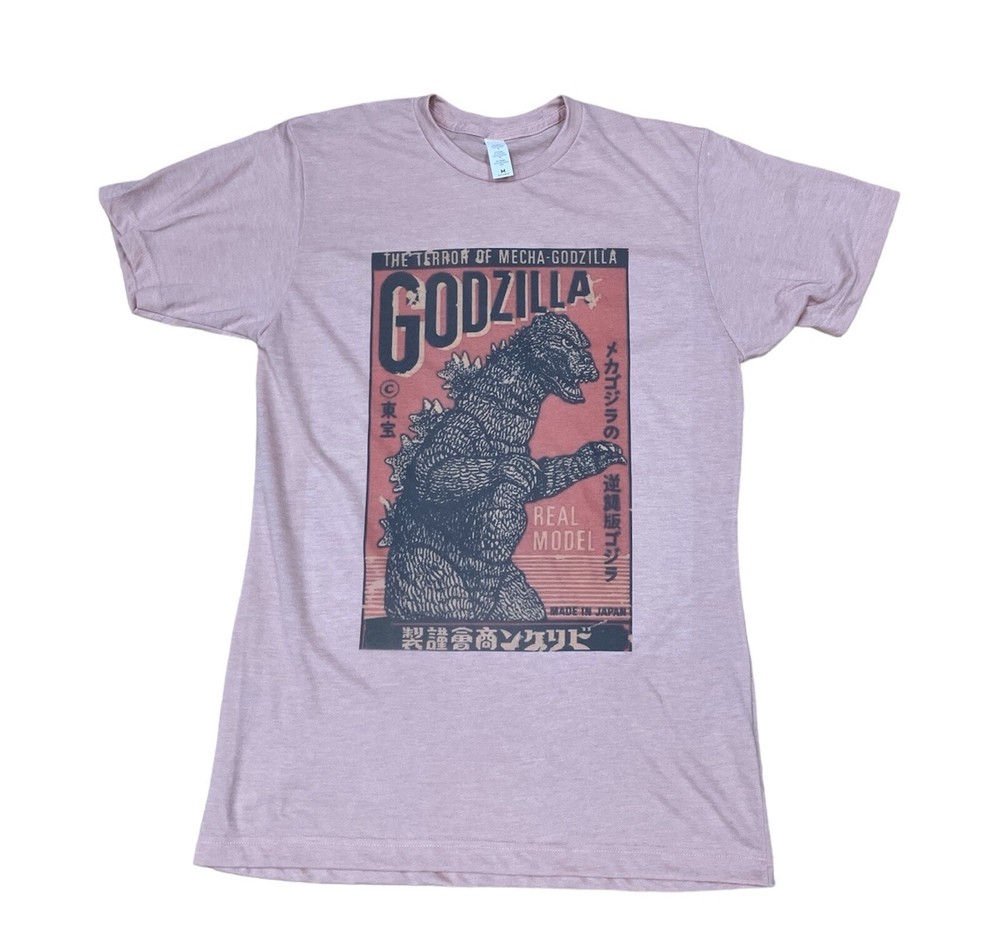 This Godzilla character graphic design T-shirt is perfect for fans of the iconic fictional character. The shirt features a solid pink color with a crew neck and short sleeves, made from a comfortable blend of polyester and cotton with a canvas fabric type. The classic fit and unisex adults size make it a versatile addition to any wardrobe.The shirt is machine washable and perfect for all seasons, with a graphic print of the Godzilla character family theme.