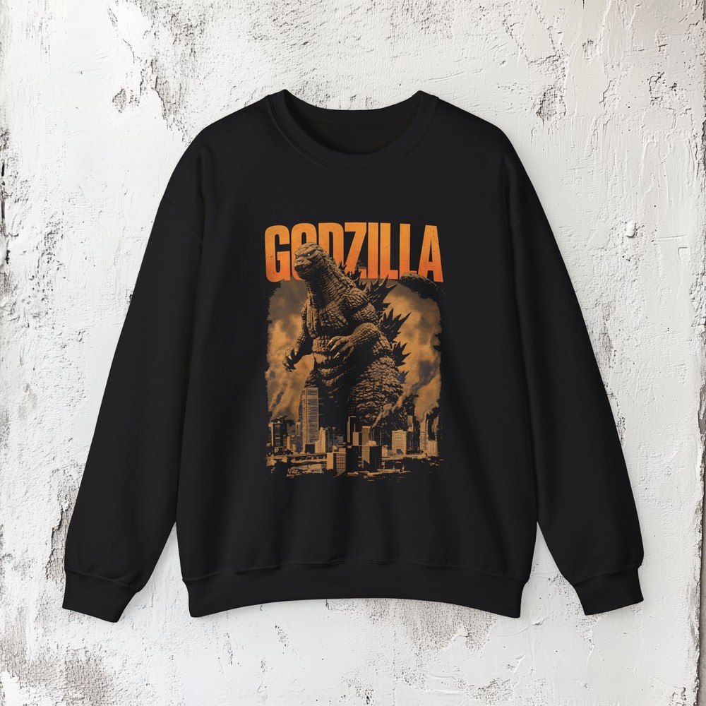 Love this retro Godzilla sweatshirt! Super soft, warm, and fits great—feels like wearing a cozy hug. The print is vibrant and holds up well after washes. Perfect for lounging or making a casual statement. A must-have for fans of classic monster movies!