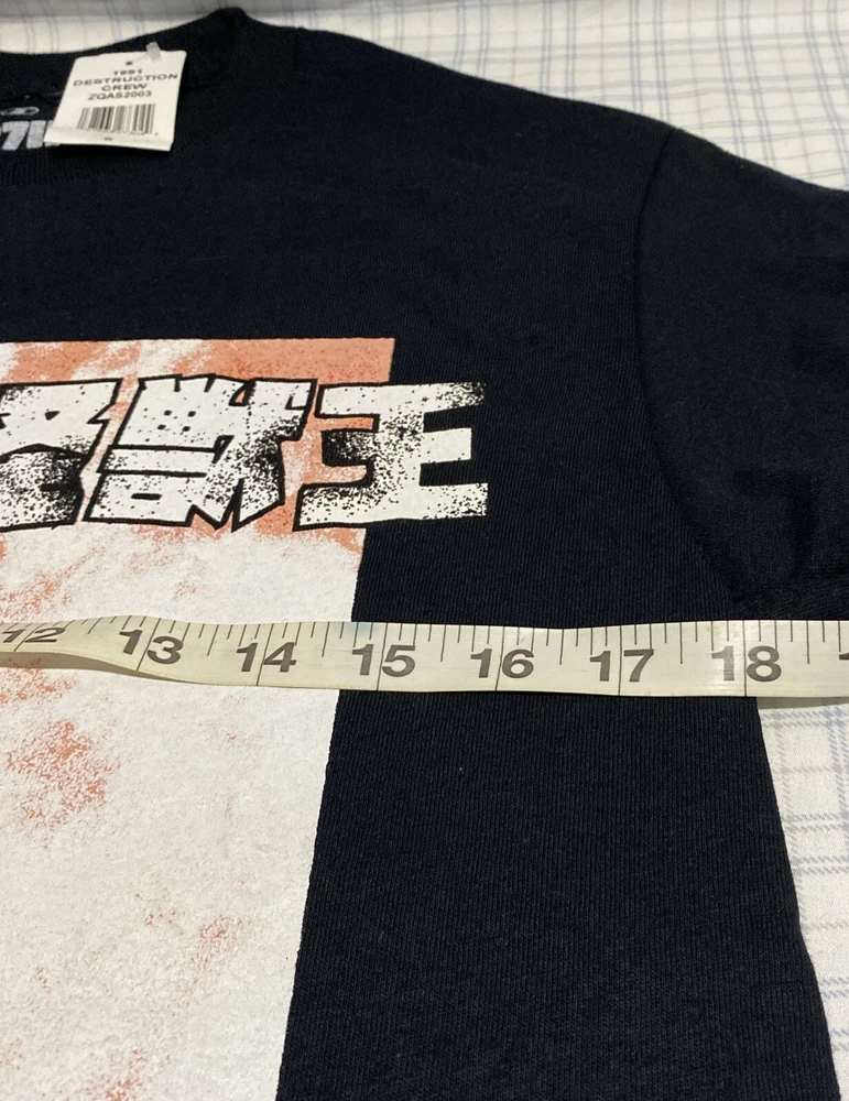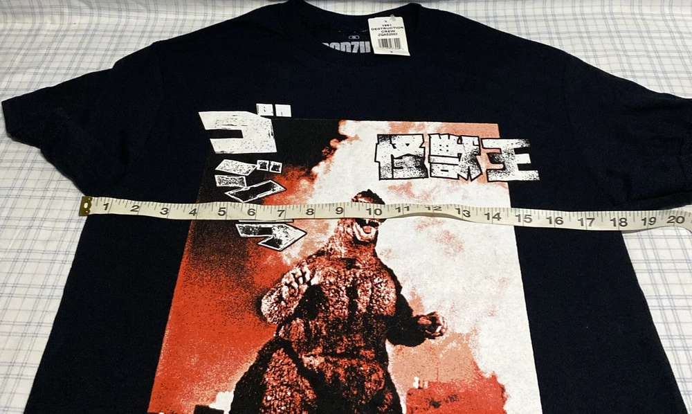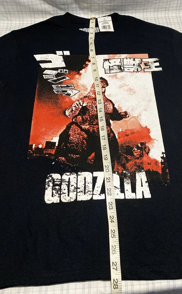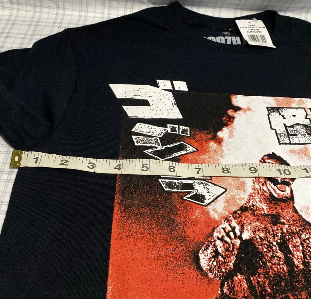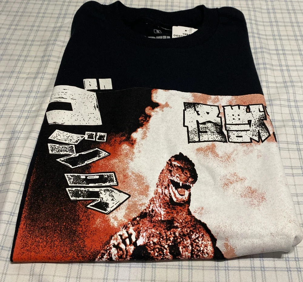 This Godzilla Classic 1991 Destruction with Kanji Men's T-Shirt is a must-have for any fan of the iconic movie monster. Made from 100% cotton knit fabric, this graphic tee features a crew neck and short sleeves. The black shirt is emblazoned with a Godzilla logo and a Japanese Kanji script that reads "Destruction" - a nod to the monster's penchant for wreaking havoc. This regular fit T-shirt is perfect for all seasons and can be machine washed for easy care. Available in size small , this shirt is handmade and features no vintage or personalized elements. Whether you're a die-hard fan of Godzilla or just love the movie's graphic themes, this T-shirt is sure to add some roar to your wardrobe.