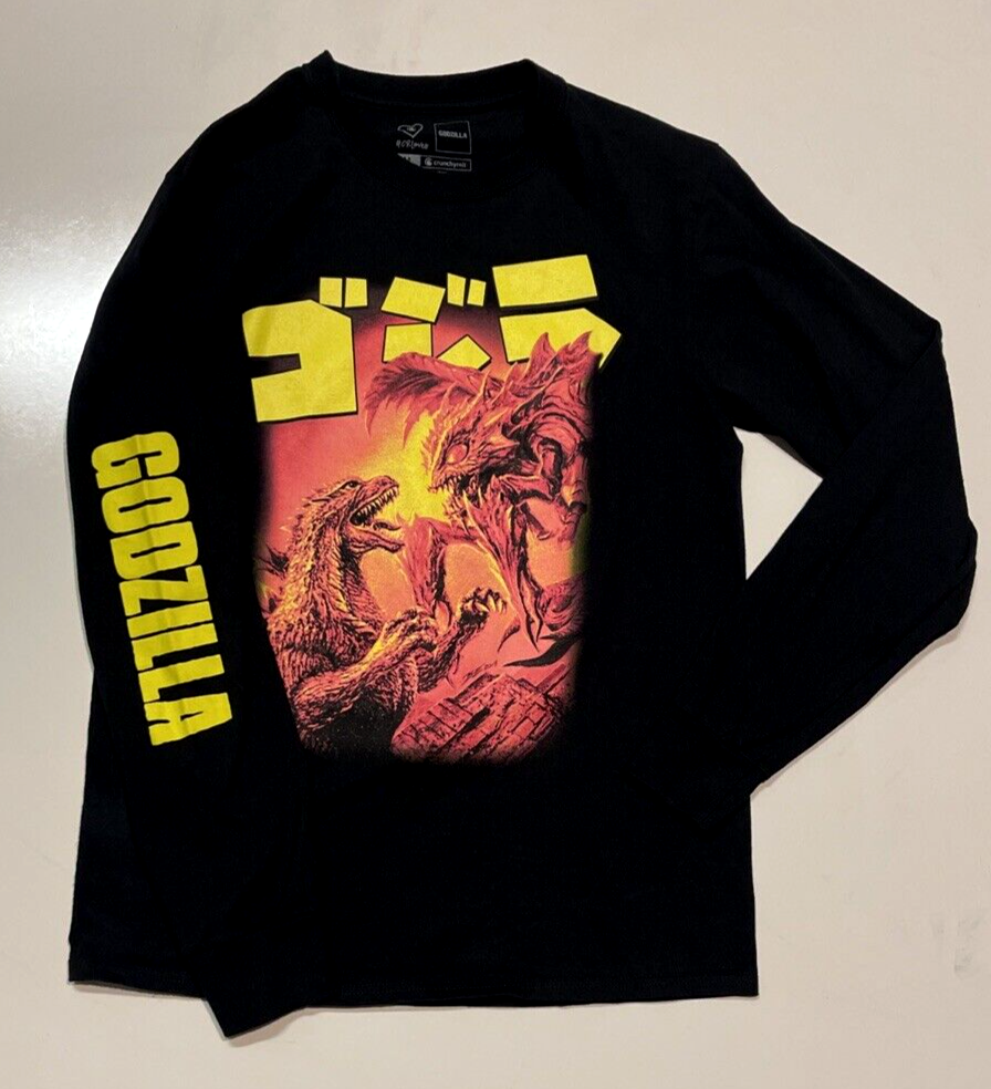 Crisp prints on front, back, and arm! Like new condition, no wear, bright print. Ships fast. AI says: Show off your love for Godzilla with this amazing long sleeve T-shirt! Featuring a cool graphic print of the famous monster, this shirt is perfect for any fans of the movie, monsters, or animation themes. It is made of high-quality material with double-sided features and comes in a regular size type for unisex adults. The shirt is in black color and has a size of M, making it an ideal fit for anyone who wants to look great and feel comfortable at the same time. Get ready to rock this Godzilla Crunchyroll Cataclysm Toho Monsters shirt and make a statement!