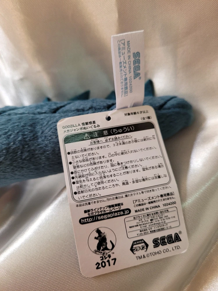 Upon this listing is π₯ Free Shipping π₯ GODZILLA EARTH FILIUS JUMBO SIZE Stuffed Plush Doll Size : 13 inch. tall x 25 inch. long Genuine SEGA Product Described as NEW OLD STOCK Attached with paper hang-tag Excellent Condition Well Kept and Well Cared Donβt miss this! Thank you for looking!