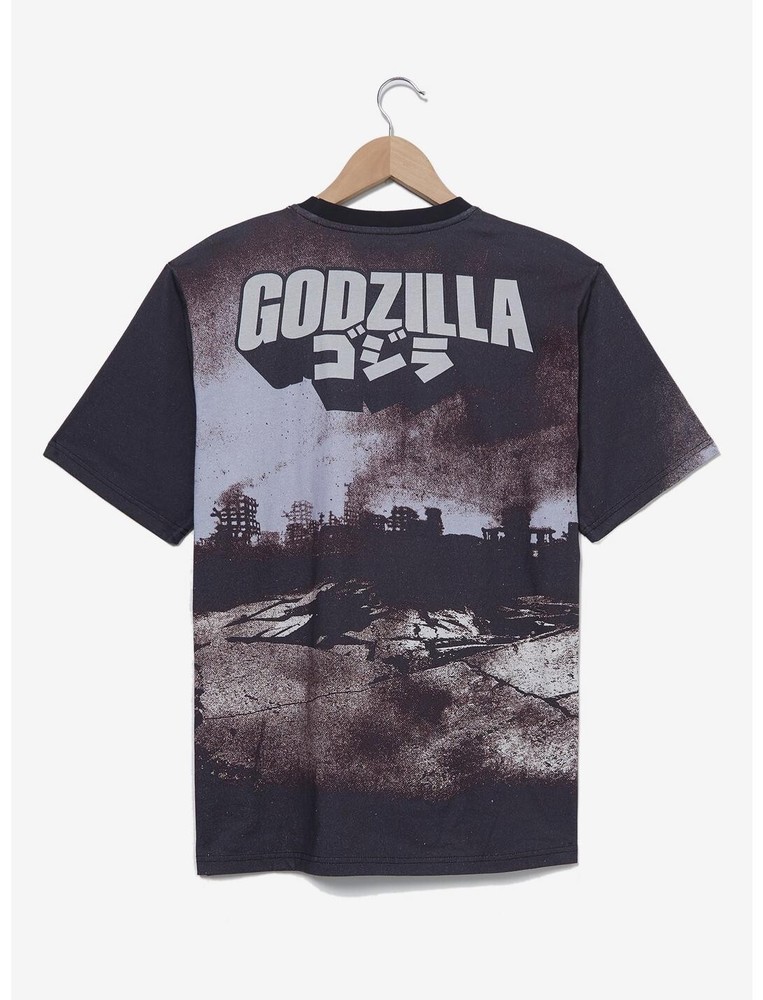 Godzilla Fiery Faded T-Shirt — BoxLunch Exclusive Bring some mayhem to your closet with this Godzilla tee! The iconic monster poses amid its name and a wraparound print of a destroyed city, essential for fans of the mega villain. A BoxLunch Exclusive! 100% cotton Listed in unisex sizes Wash cold with like colors; dry low Imported