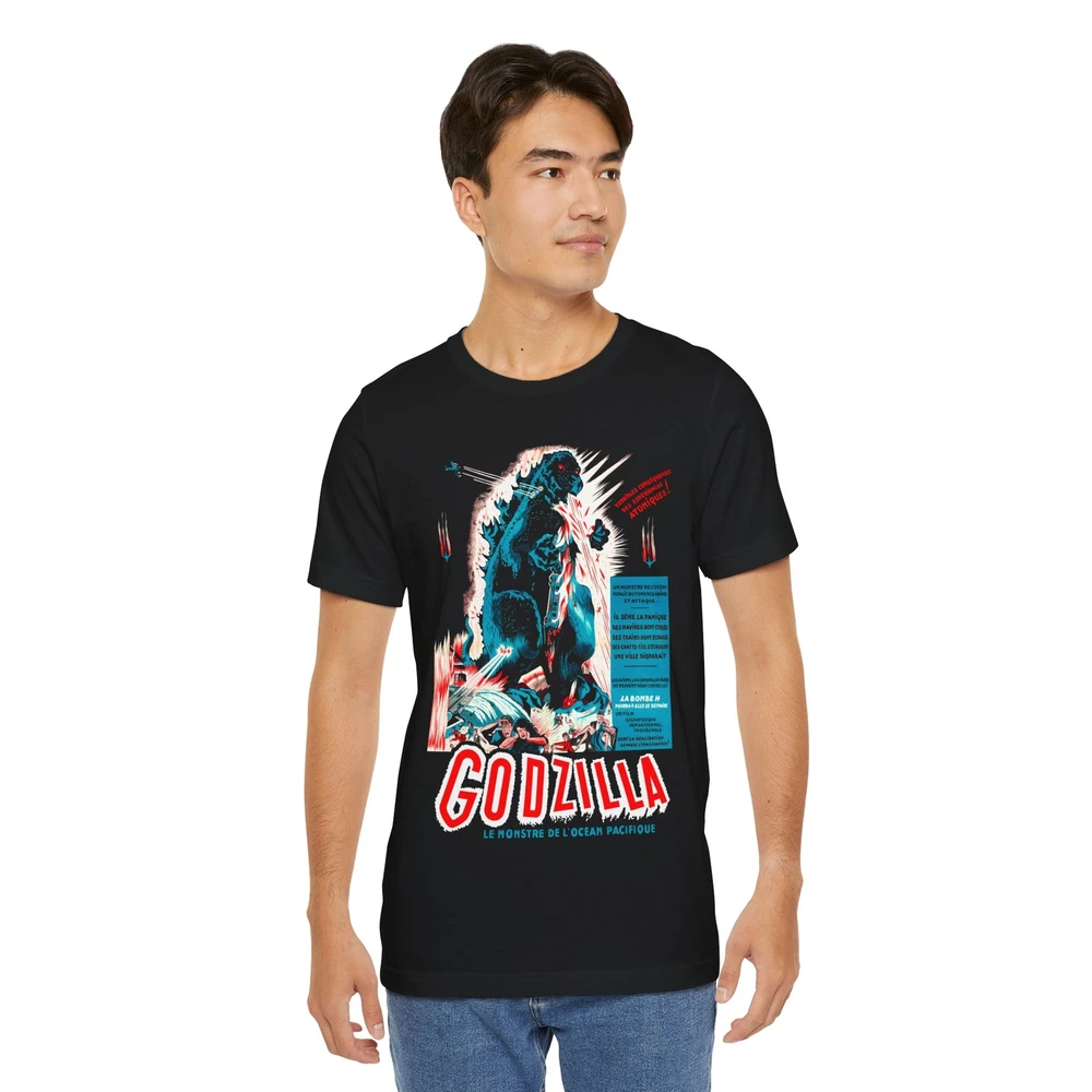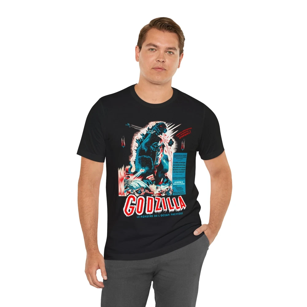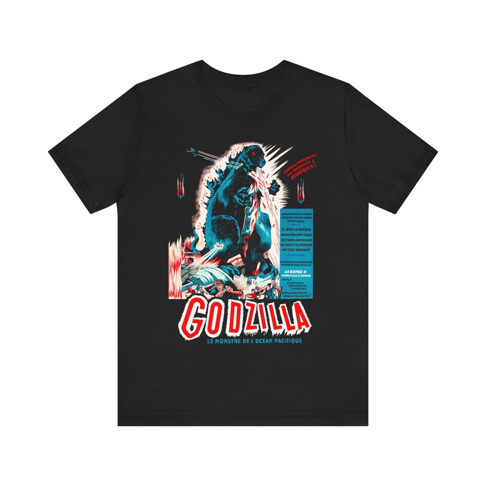 Godzilla monster movie fan favorite. This French movie poster design for the classic Godzilla film has a nice vintage look - great gift for film fans. EU representative : HONSON VENTURES LIMITED, 3, Gnaftis House flat 102, Limassol, Mesa Geitonia, 4003, CY Product information : Bella+Canvas 3001, 2 year warranty in EU and Northern Ireland as per Directive 1999/44/EC Warnings, Hazard : For adults, Blank product sourced from Honduras Care instructions : Machine wash: cold (max 30C or 90F), Non-chlorine: bleach as needed, Tumble dry: low heat, Iron, steam or dry: medium heat, Do not dryclean