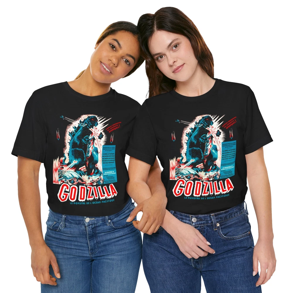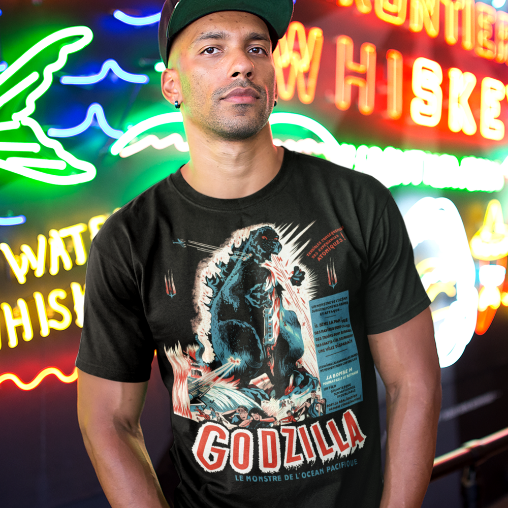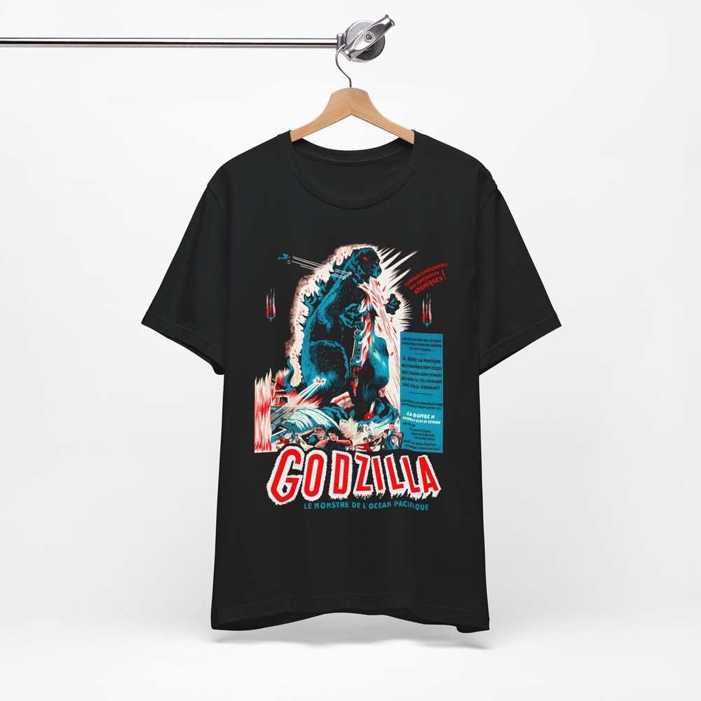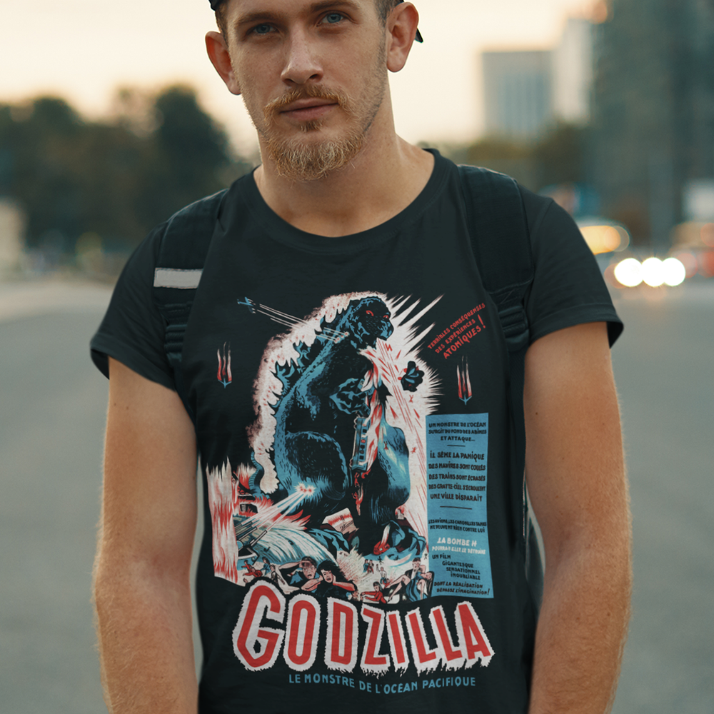 Godzilla monster movie fan favorite. This French movie poster design for the classic Godzilla film has a nice vintage look - great gift for film fans. EU representative : HONSON VENTURES LIMITED, 3, Gnaftis House flat 102, Limassol, Mesa Geitonia, 4003, CY Product information : Bella+Canvas 3001, 2 year warranty in EU and Northern Ireland as per Directive 1999/44/EC Warnings, Hazard : For adults, Blank product sourced from Honduras Care instructions : Machine wash: cold (max 30C or 90F), Non-chlorine: bleach as needed, Tumble dry: low heat, Iron, steam or dry: medium heat, Do not dryclean