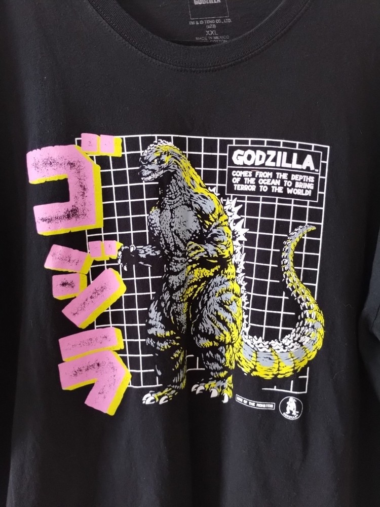 This black graphic T-shirt featuring the iconic Godzilla design is a must-have for any fan of the classic monster. Made for regular fit and available in size XXL, this unisex shirt is perfect for both men and women. The shirt is made of high-quality material, ensuring comfort and durability. The brand name "Godzilla" adds to the shirt's appeal, making it a great addition to any collection. Whether you're a fan of the movies or just love the look of the shirt, this is a great purchase.