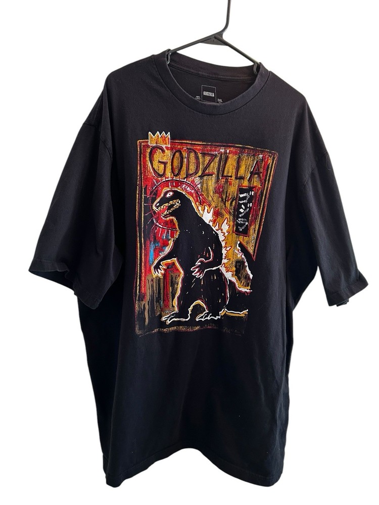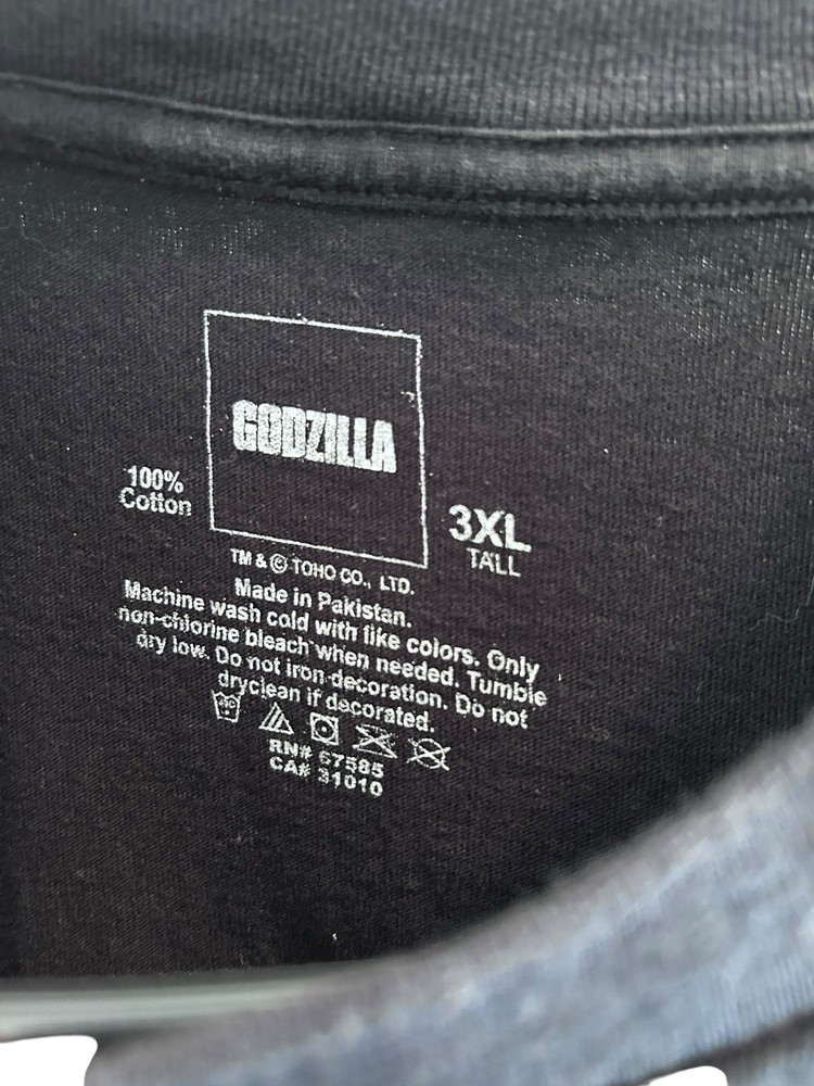 Godzilla Graphic T Shirt Mens 3XLT Tall Short Sleeve Blk Fire Breathing Creature Top to bottom measure 33" Pit to pit measure 27.5"...