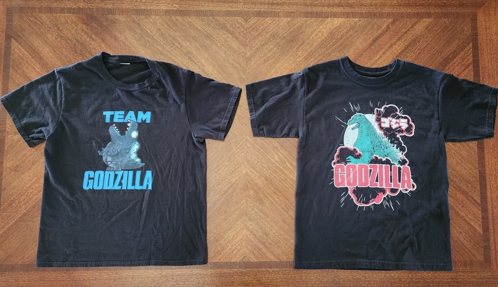 Godzilla Graphic T Shirts Youth Medium (10/12) Lot Of 2. The shirt on the right is new without tags, the shirt on the left is pre-owned worn once. Smoke-free, dog-friendly home....