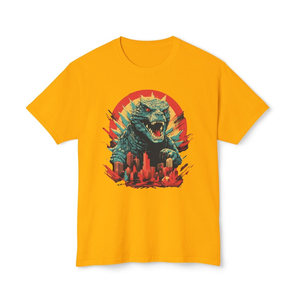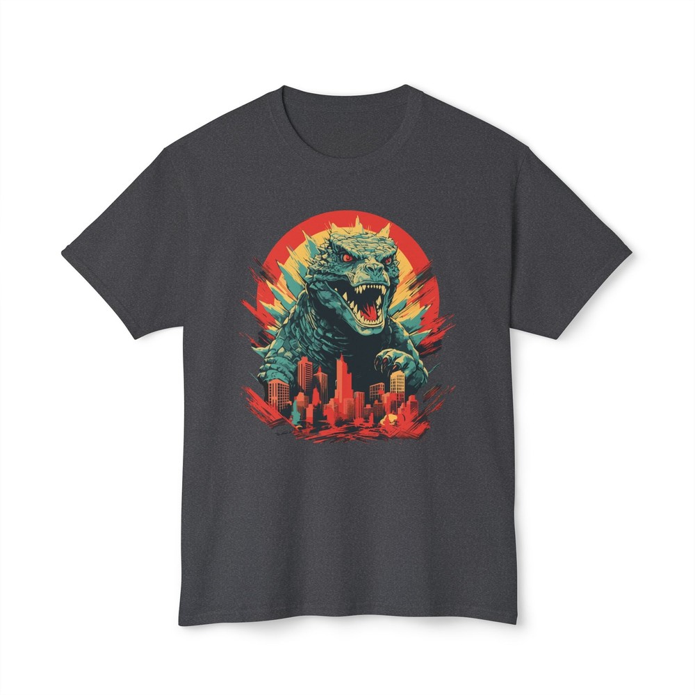 A godzilla inspired Japanese style T-shirt that is perfect for fans of the iconic monster. Made with high-quality cotton and featuring a classic fit, this tee is ideal for casual wear or as a statement piece. Great for Godzilla enthusiasts and Japanese culture lovers. Product features - 100% cotton jersey - Classic fit - Sustainably-sourced cotton - 1x1 Ribbed collar for a well-fitted look - Durable double needle stitching Care instructions - Machine wash: cold (max 30C or 90F) - Non-chlorine: bleach as needed - Tumble dry: low heat - Iron, steam or dry: low heat - Do not dryclean