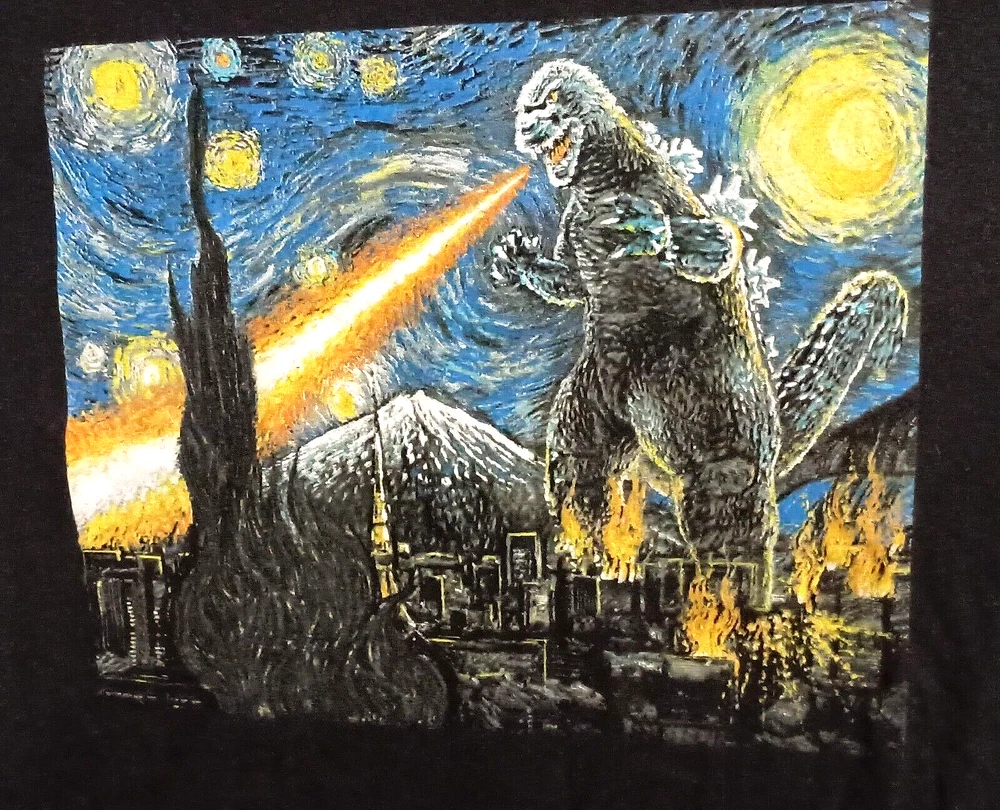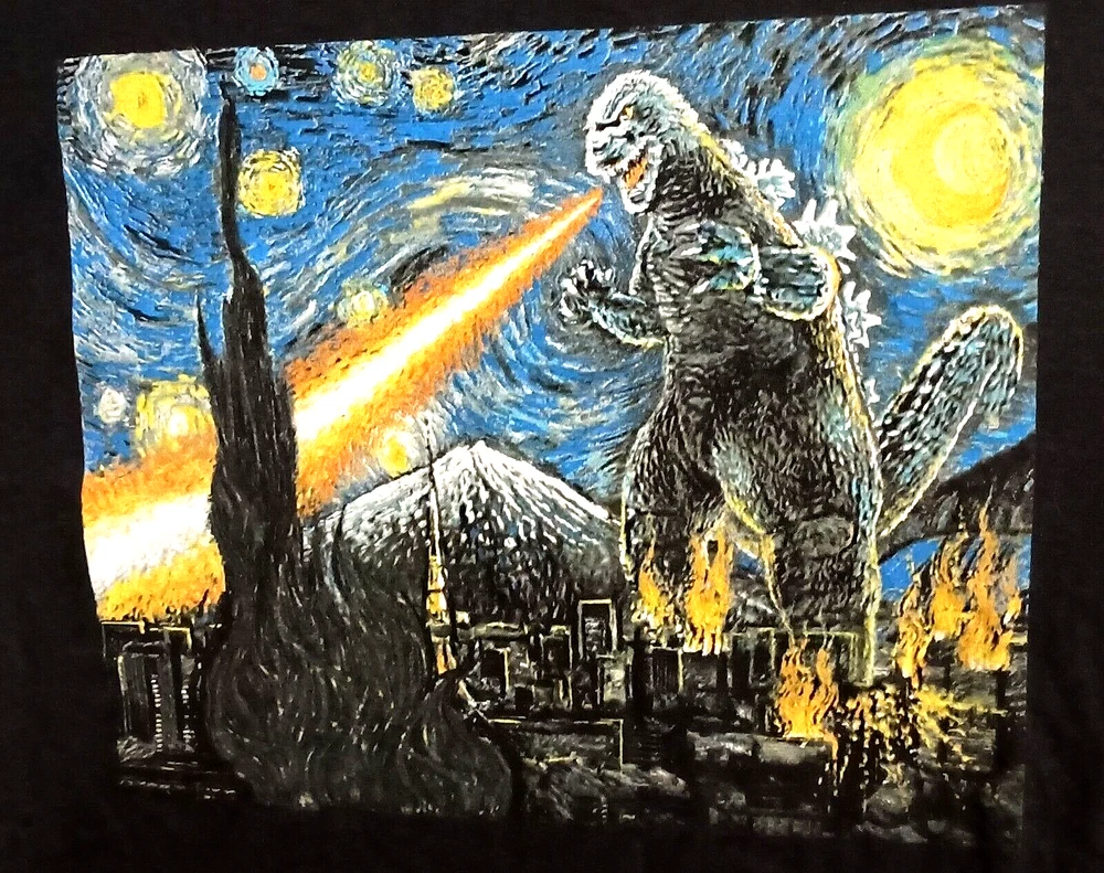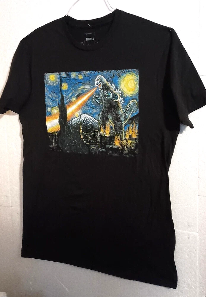 Perfect chance to add this Neat Godzilla T-shirt to your collection or wardrobe. This is from a group of T-shirts that came from an over stock purchase from a local retailers warehouse. This is new (NOS), all original. These were stored in a box clean and dry as new. Super neat to wear or collect.. Please read full Description Below: Brand / Theme: Godzilla ** Topic: Parody of Van Gogh's classic painting Stary Night. Size: Small, Adult ( Selling as collectible, so not responsible for sizing and not returnable) We sell all t-shirts as collectibles, but give all measurements for informational purposes only(not returnable): Pit to Pit: 17" Inches Front of collar to bottom of shirt: 24+" inches. Material: 100 % cotton. Main Color: Black Date: 2021, but sure of exact date, undated. The shirt is by: TOHO Condition: New, Excellent, Never worn and new condition. selling as a collectible, hand washing if wearing is recommended. Special Note: As with all t-shirts, we are selling as a collectible only..no real outstanding marks, unless other noted above. All our items are selected and inspected and please follow condition stated above. Tough to find item. Any person wanting to add to their collection should buy this before they are gone. Make Offer: Discount on multiple purchases only, so please shop the store and make your best reasonable offers we will gladly discount if you bundle a few items. I have been a member since 1998 and have sold thousands of items on EBAY, so please Buy with confidence I describe the items as best I can, but ask questions if needed. We Ship from our location in 3-5 Business days of payment, and may arrive to your location in 6-12 days. Faster around the Holidays and please be patient with USPS delays and errors not under our control. Please favor our store to see all the thousands of items we are putting up this year. ** Any product names, logos, brands, and other trademarks or images featured or referred to within this offering and or on any social media forum are the property of their respective trademark holders. Got2Collect is not affiliated with any trademark holder and holders do not sponsor or endorse Got2Collect or any items it is offering for sale unless otherwise expressly stated. All items are protected under The first sale doctrine, codified at 17 U.S.C. § 109. BSE T-Shirt Godzilla
