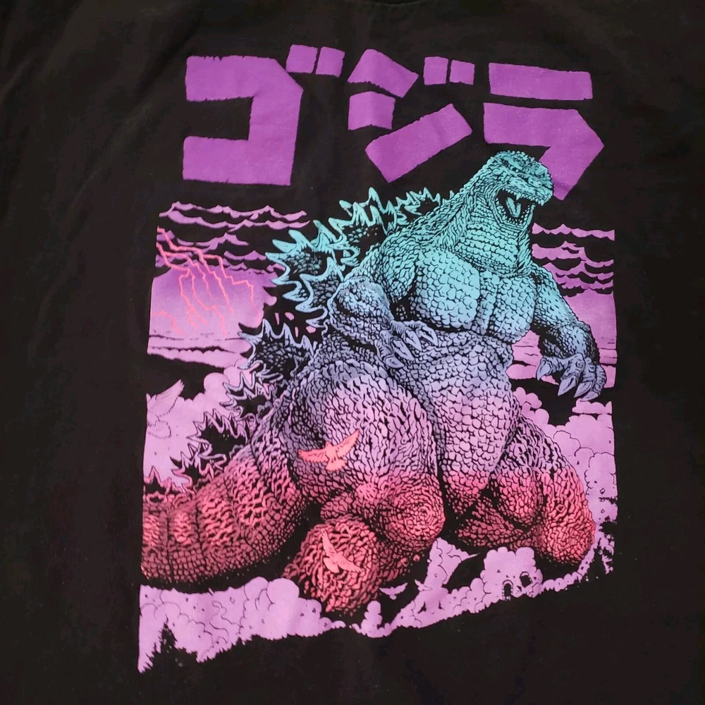 Show off your love for horror movies and the iconic Godzilla character with this black graphic t-shirt. Made from comfortable cotton material, this classic fit shirt features short sleeves and a round neckline. The solid pattern and retro theme make it a great addition to any movie or anime fan's wardrobe. This shirt is machine washable and perfect for all seasons, whether you're heading to a summer BBQ or a spooky Halloween event. The Gildan Heavy Cotton product line ensures high-quality print and lasting durability. Don't miss out on the chance to add this Godzilla branded t-shirt to your collection.
