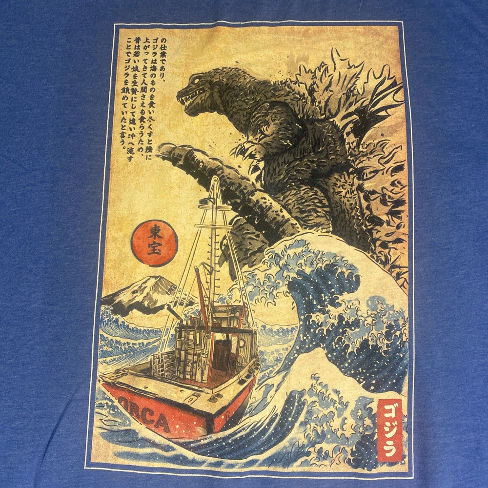 Godzilla Kaiju Shirt Mens 2XL Blue Short Sleeves Japanese Tee on a Delta tag Measurements in photo's - please measure and compare your favorite similar item to ensure proper fit. This item is used therefore measurements may differ from new condition measurements This item has been cleaned and ready for shipping. Thank you for viewing this listing please reach out to us directly with any questions you may have.