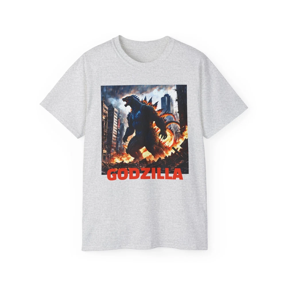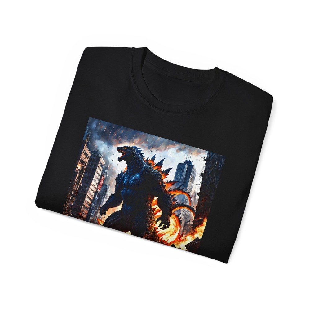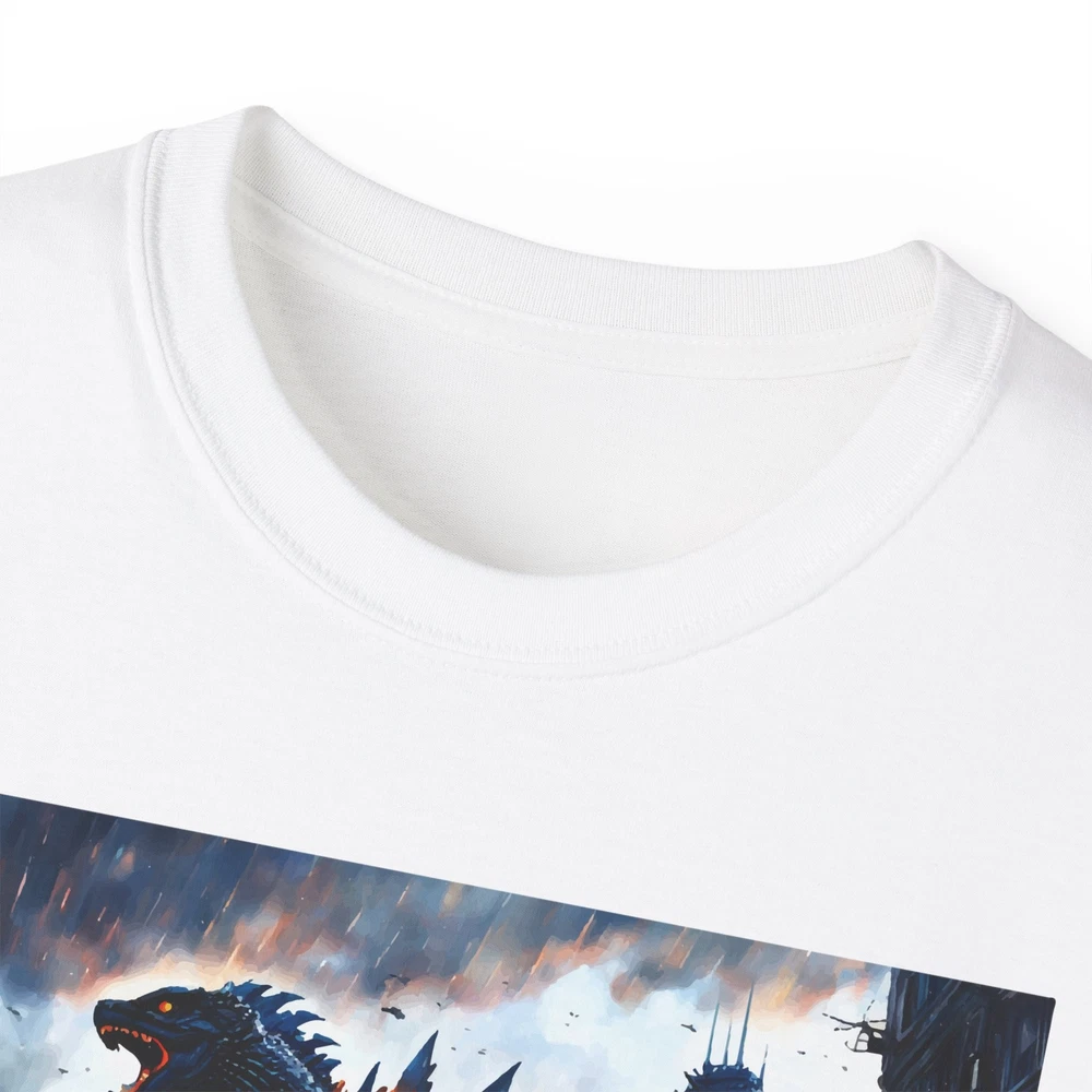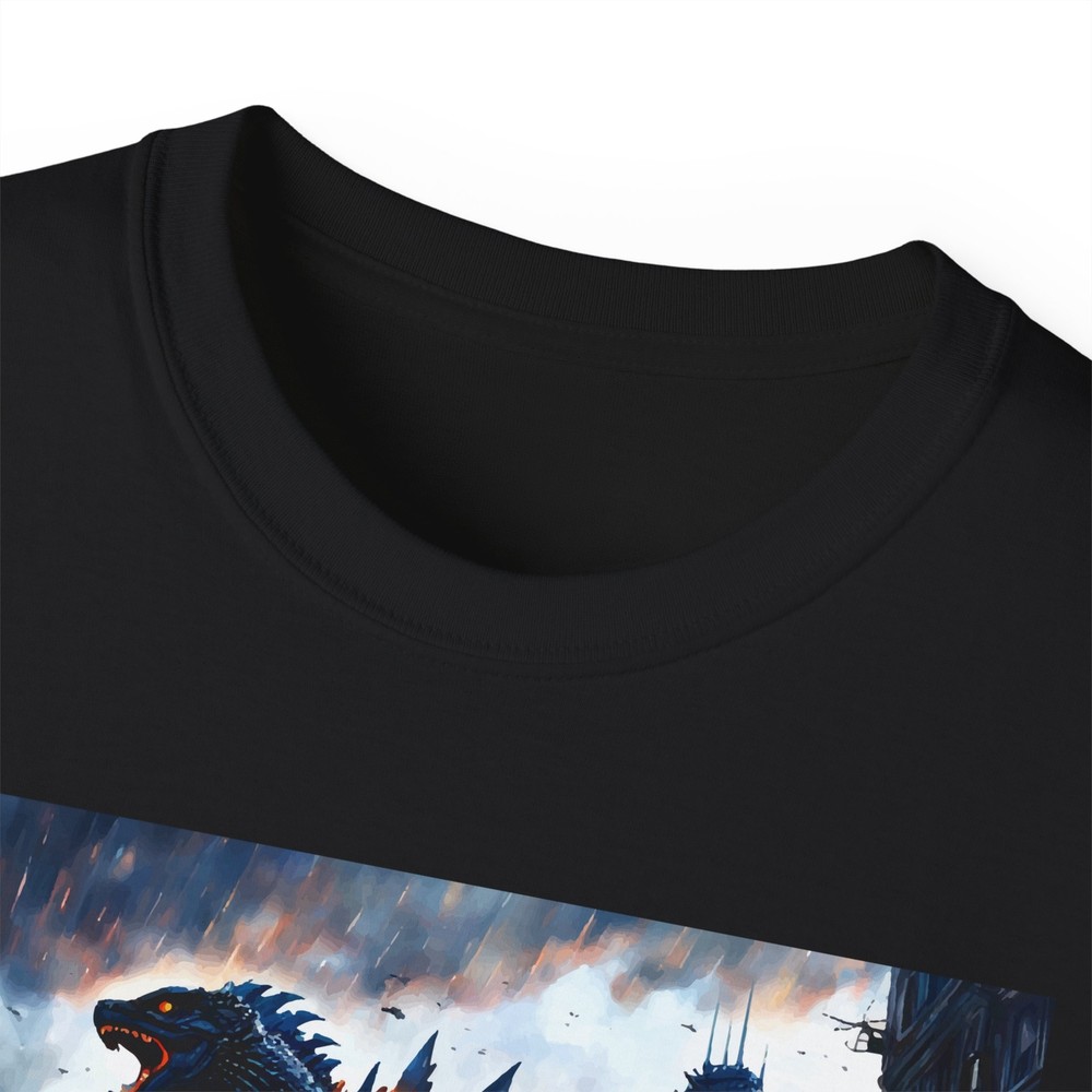 This Godzilla themed t-shirt is perfect for fans of kaiju and gojira. It gives off a cool and edgy vibe, making it a great choice for casual wear or for attending conventions and movie screenings. An ideal gift for Godzilla enthusiasts and those who appreciate unique and eye-catching apparel. Relevant for birthdays, holidays, comic cons, and movie nights. Product features - Godzilla themed design - Ethically sourced and manufactured 100% US cotton fabric - Versatile classic fit and crew neckline - Tear-away label for skin comfort - Available in various fabric blends for different color options Care instructions - Machine wash: cold (max 30C or 90F) - Non-chlorine: bleach as needed - Do not tumble dry - Do not iron - Do not dryclean