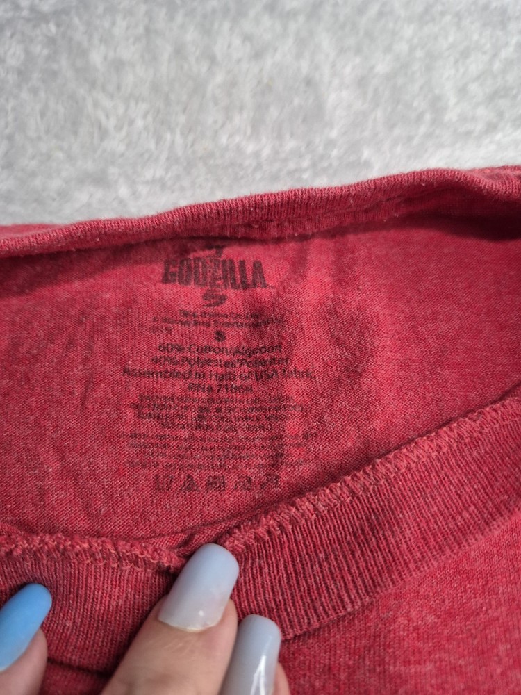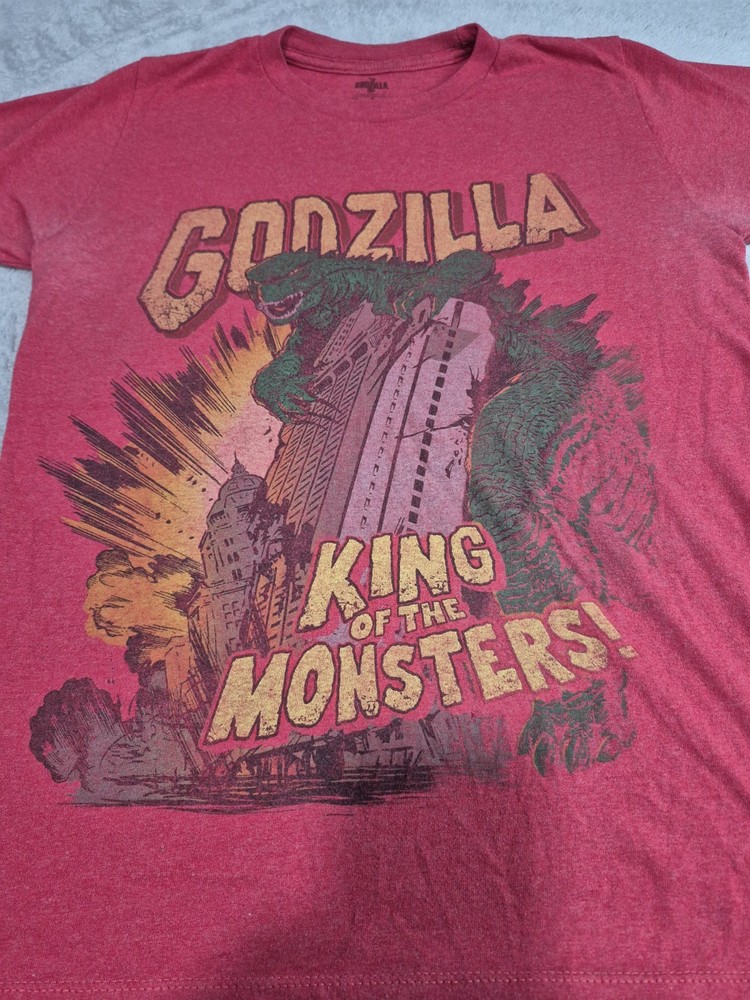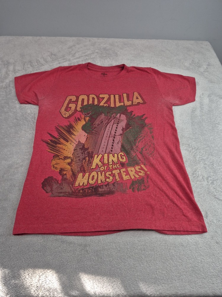 This Godzilla King Of The Monsters T-shirt is a must-have for any fan of the iconic franchise. Made from comfortable cotton material, it features a round neck and short sleeves for a classic fit. The shirt is a size small and has a regular fit for a classic look. The vibrant red color of the shirt is perfect to showcase your love for the character. Whether you're a collector or just a casual fan, this shirt is a great addition to any wardrobe. C1
