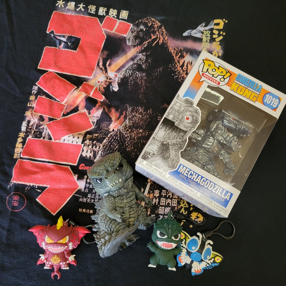 The Godzilla Merch Lot includes a t-shirts, 3 keychains, and 2 Funko Pops featuring the iconic monster Godzilla. These collectible items are perfect for fans of the franchise and are sure to add a touch of fandom to any collection. Whether for display or for everyday wear, this lot offers a variety of Godzilla merchandise for enthusiasts to enjoy. Godzilla pop comes out of box. T-shirt is a size Large.