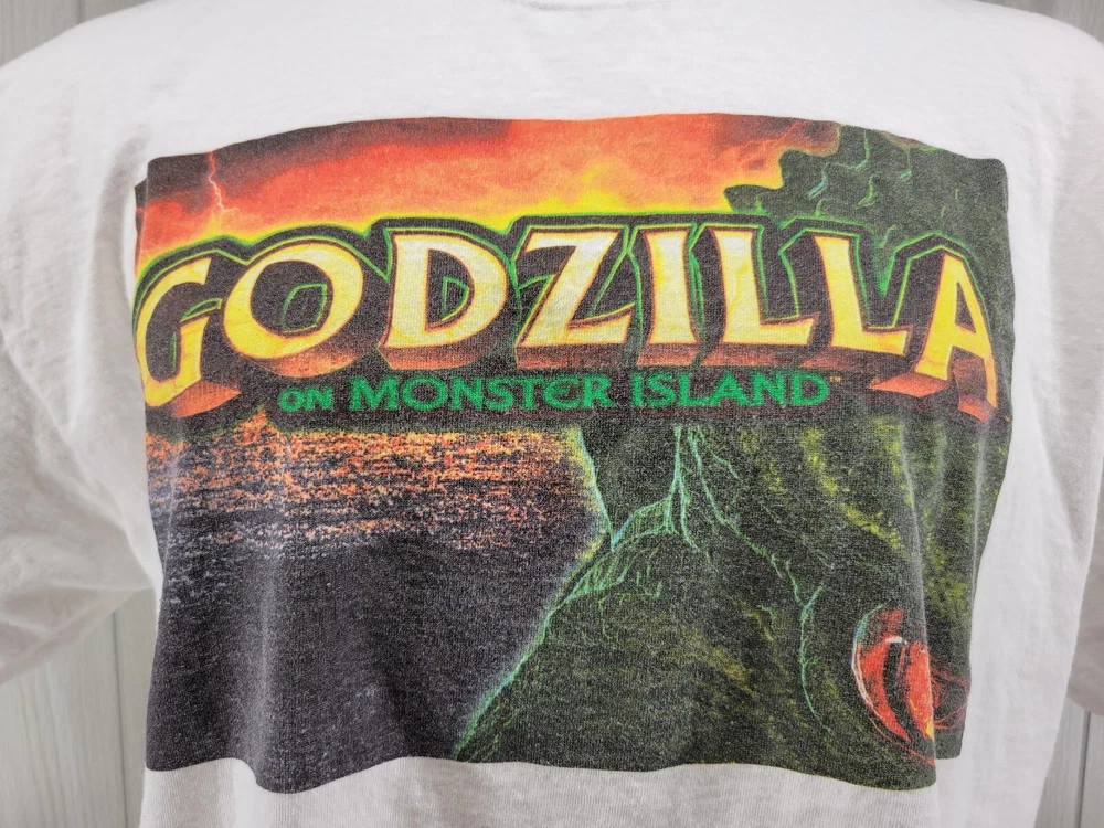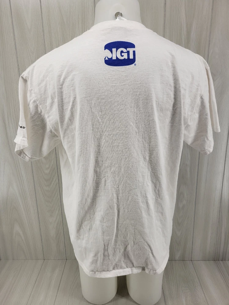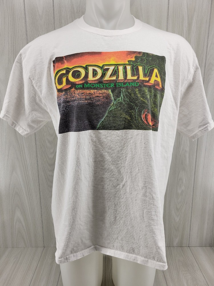Godzilla Monster Island Video Slots IGT T-Shirt Mens Size XL White #2 Does have a small spot stain on the front. Please see measurements for fit. Preowned condition. No holes found. See photos for details. 21.5" Shoulder to Shoulder 23.5" Armpit to Armpit 8" Arm Length 28.5" Down Back
