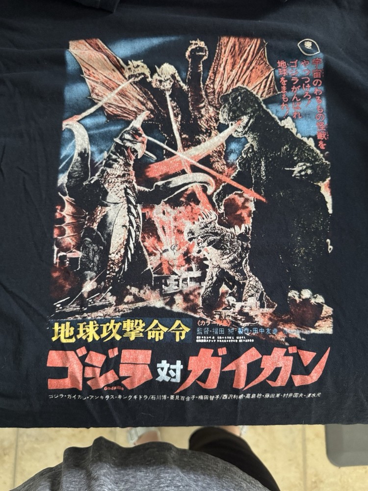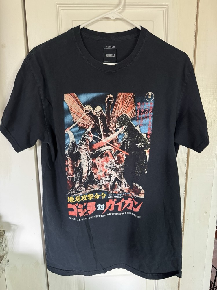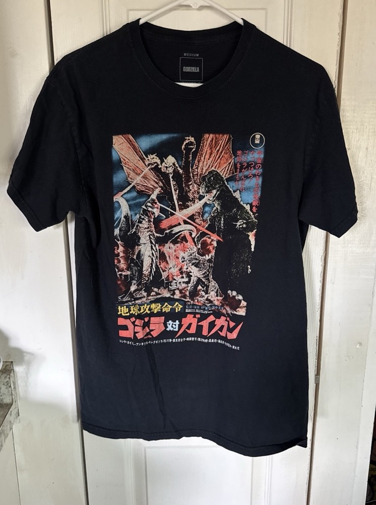 Show off your love for the King of Monsters with this vintage Godzilla t-shirt. Made from high-quality materials, this retro Japan movie tee features the iconic beast himself, Godzilla The Legend. Perfect for any fan of the classic monster movies, this black t-shirt comes in a regular size medium and is great for everyday wear. With its vintage look and feel, this t-shirt is sure to make a statement. Whether you're a collector or just looking for a cool piece of fan merchandise, this Godzilla t-shirt is a must-have. So why wait? Add it to your collection today and show off your love for the biggest monster of them all.