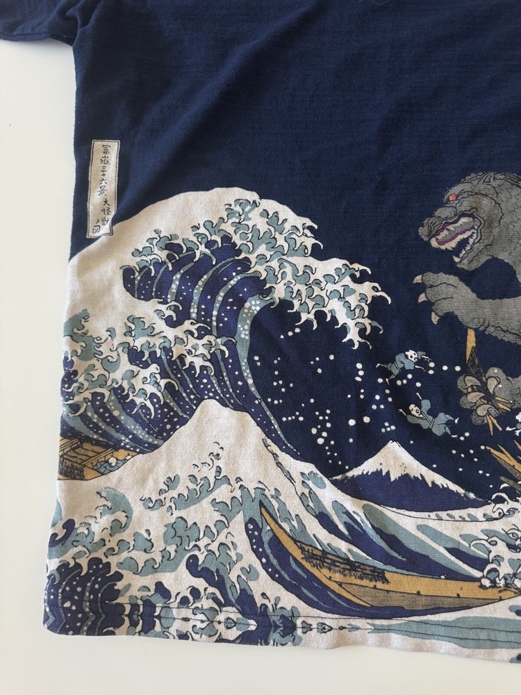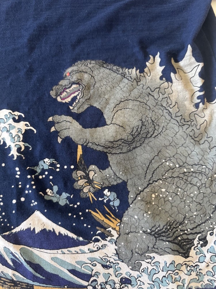 Embrace your love for the iconic monster with this stylish Godzilla Blue T-shirt. Featuring a striking Ukiyoe wave graphic print, this tee is a nod to classic artistry blended with modern fashion. Tailored for unisex adults, it offers a comfortable regular fit in a size medium, ensuring a perfect blend of style and comfort for any casual outing. Crafted from a soft cotton blend, the shirt boasts a classic crew neck and short sleeves, making it an ideal choice for the hot summer days or layering under jackets. The blue backdrop of the tee makes the Godzilla graphic pop, creating an eye-catching statement piece. Whether you're a fan of the character or just love unique graphic tees, this Godzilla T-shirt is a must-have for your wardrobe.