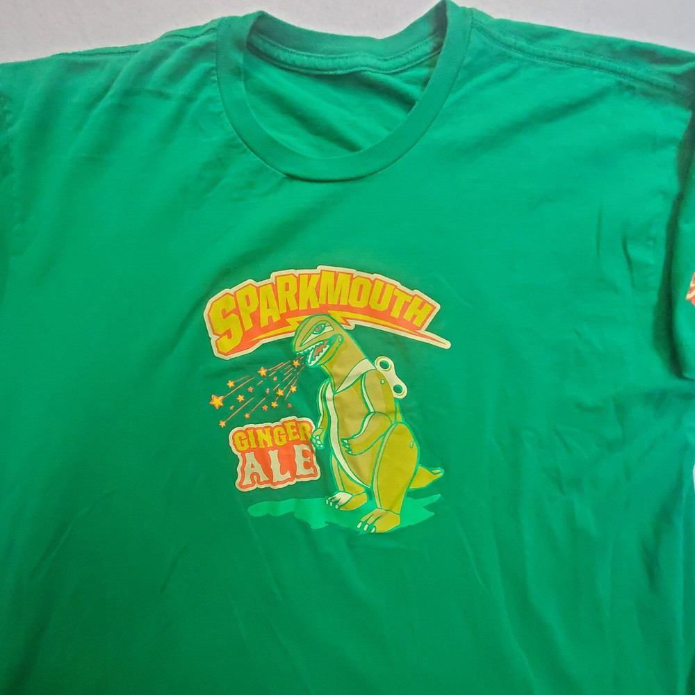 Crafted for comfort and style, the Phillips Soda Works Sparkmouth Ginger Ale Men's T-Shirt is a versatile addition to any wardrobe. Emblazoned with a playful and vibrant graphic print, this tee features a classic crew neck and short sleeves, making it ideal for all seasons. The shirt's knit cotton fabric ensures breathability and ease of care, being machine washable for your convenience. With its regular fit, this green-colored T-shirt caters to a variety of body types, offering a relaxed feel without compromising on style. Accented with the Phillips Soda Works logo, it brings a touch of brand personality to your casual attire. Whether you're out for a casual meet-up or just lounging at home, this tee is designed for those who appreciate a blend of fun and artistry in their everyday wear.