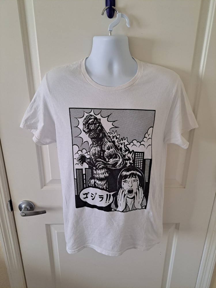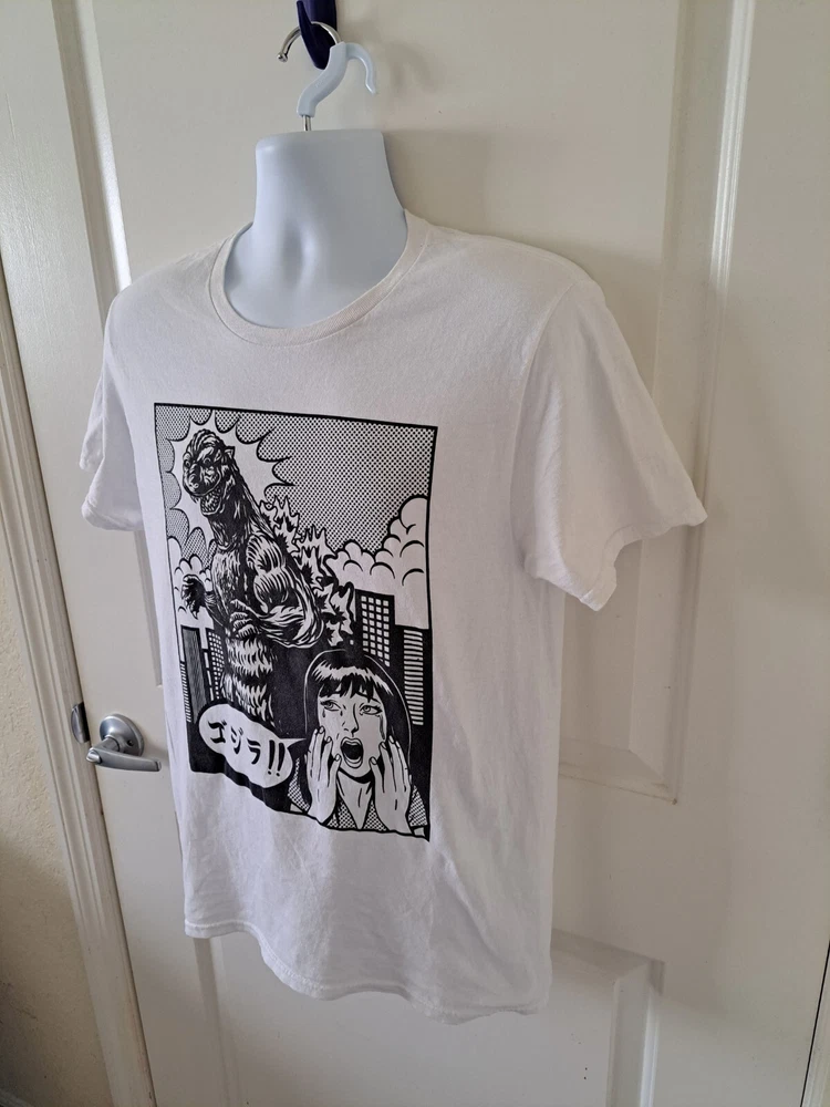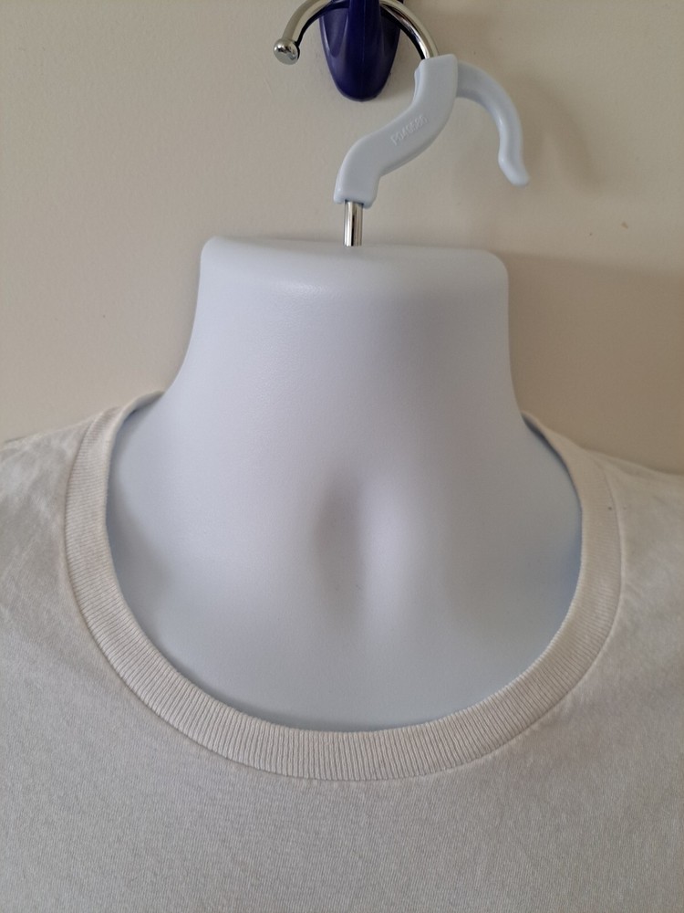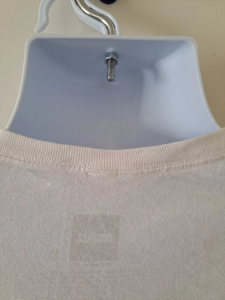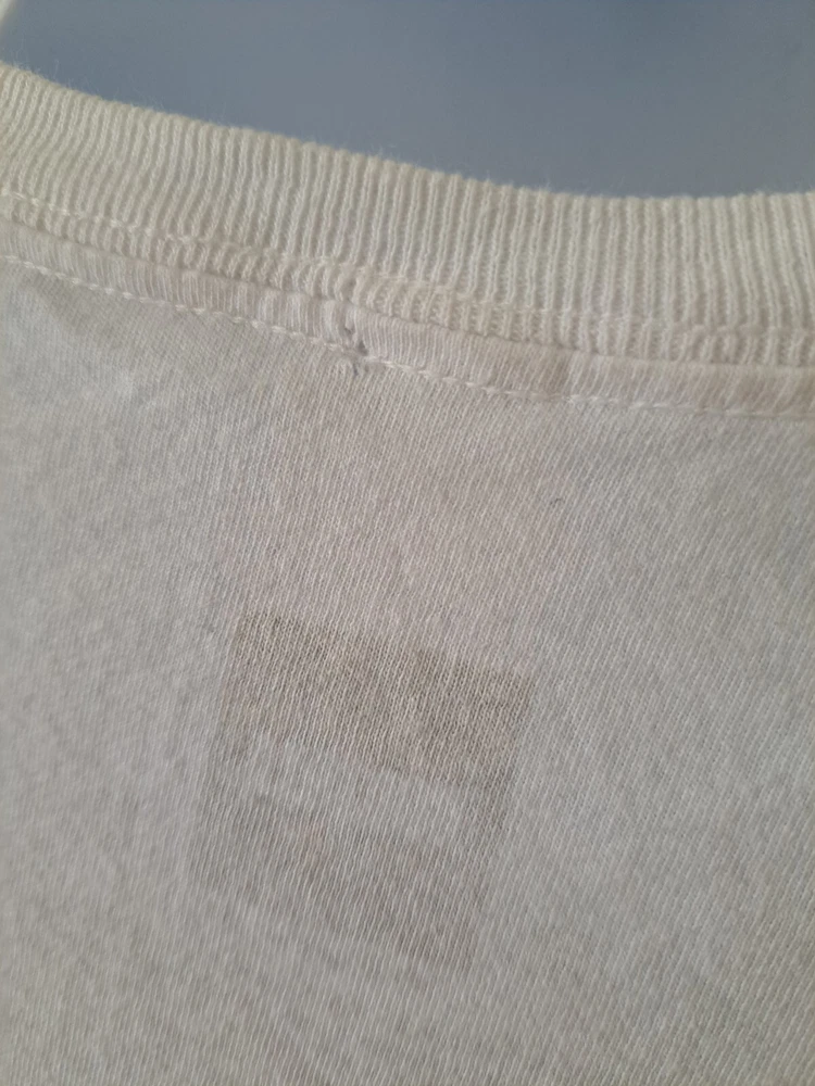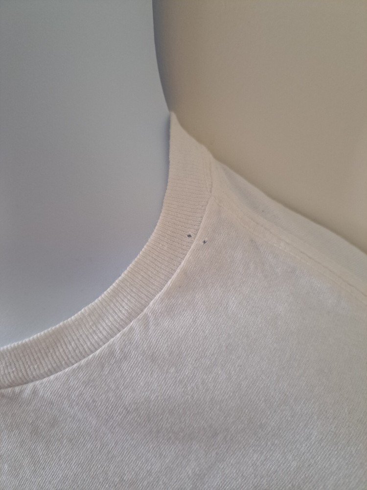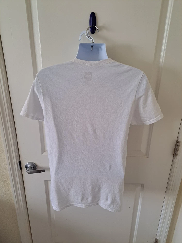 Used, has some tiny holes and minor staining on the collar as pictured but shirt is in overall good condition. Size is M and measures at approximately 27 inches from top of shoulder to bottom of sweatshirt. Across from pit to pit it measures at approximately 19 inches.