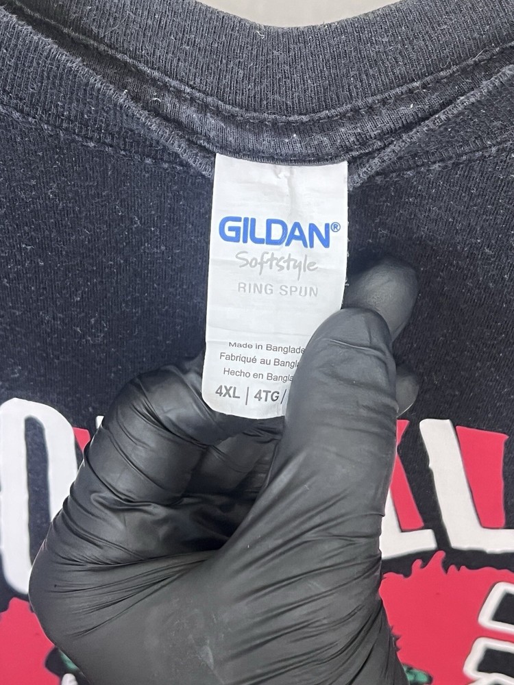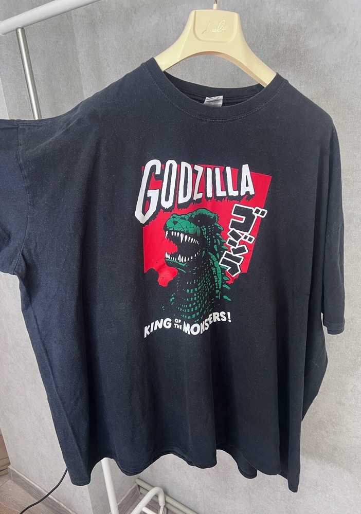 Show off your love for the classic 90s movie with this black Gildan T-shirt featuring a graphic of the iconic Godzilla. Made from comfortable cotton material and featuring short sleeves, this unisex adult T-shirt is perfect for any fan of the vintage film. The shirt is available in size 4XL and is perfect for those who want to make a statement with their fashion. With its vintage look and feel, this T-shirt is sure to become a favorite in your wardrobe. Made in Bangladesh, the shirt features a happy character design and is perfect for those who love movie-themed clothing. Whether you're a collector or just looking for a unique piece of clothing, this Godzilla shirt is a must-have.