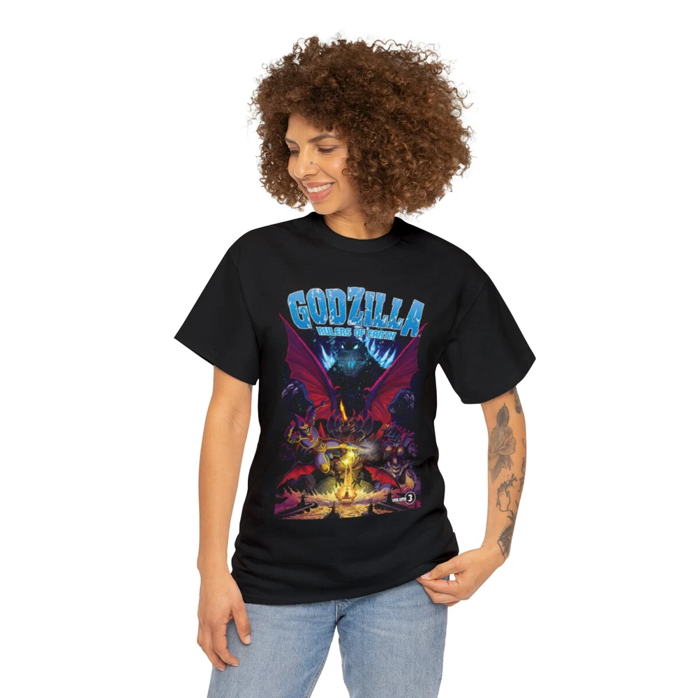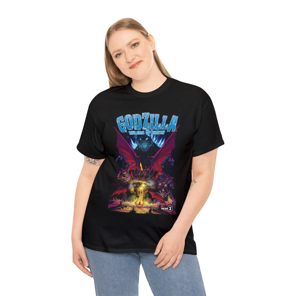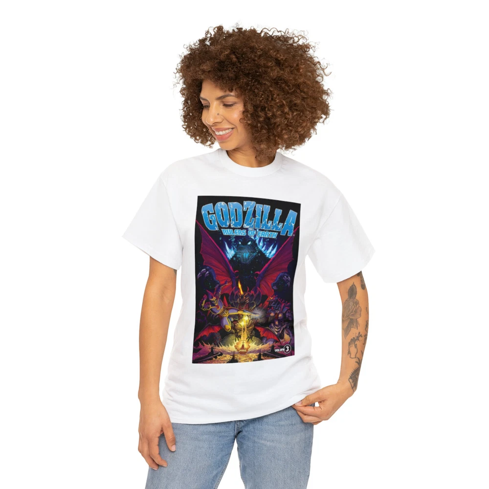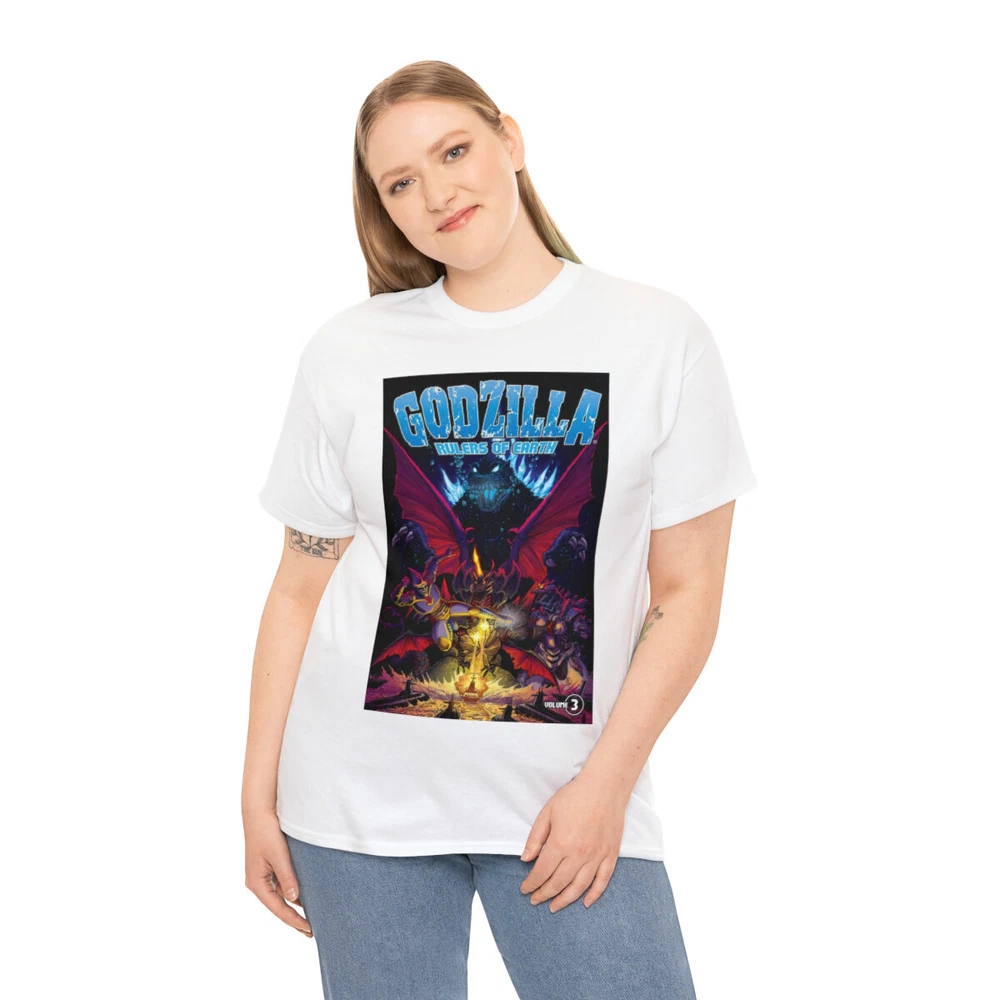 The Godzilla unisex heavy cotton tee is the basic staple of any wardrobe. It is the foundation upon which casual fashion grows. All it needs is a personalized design to elevate things to profitability. The specially spun fibers provide a smooth surface for premium printing vividity and sharpness. No side seams mean there are no itchy interruptions under the arms. The shoulders have tape for improved durability. .: 100% cotton (fiber content may vary for different colors) .: Medium fabric (5.3 oz/yd² (180 g/m²)) .: Classic fit .: Tear-away label .: Runs true to size