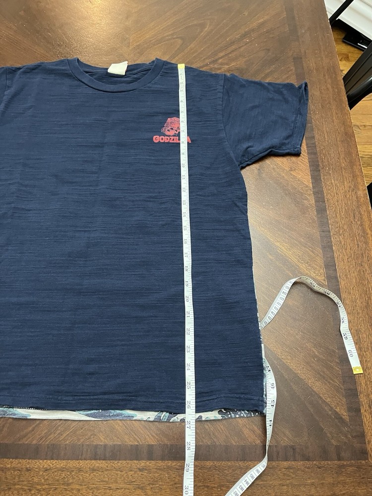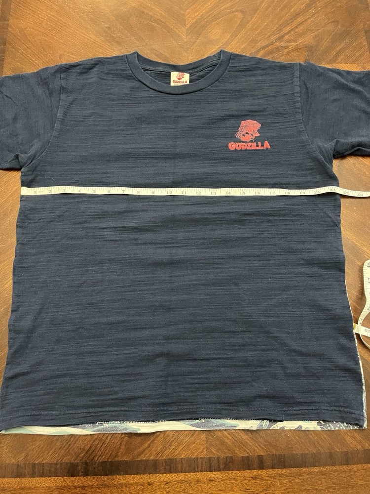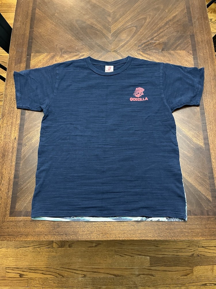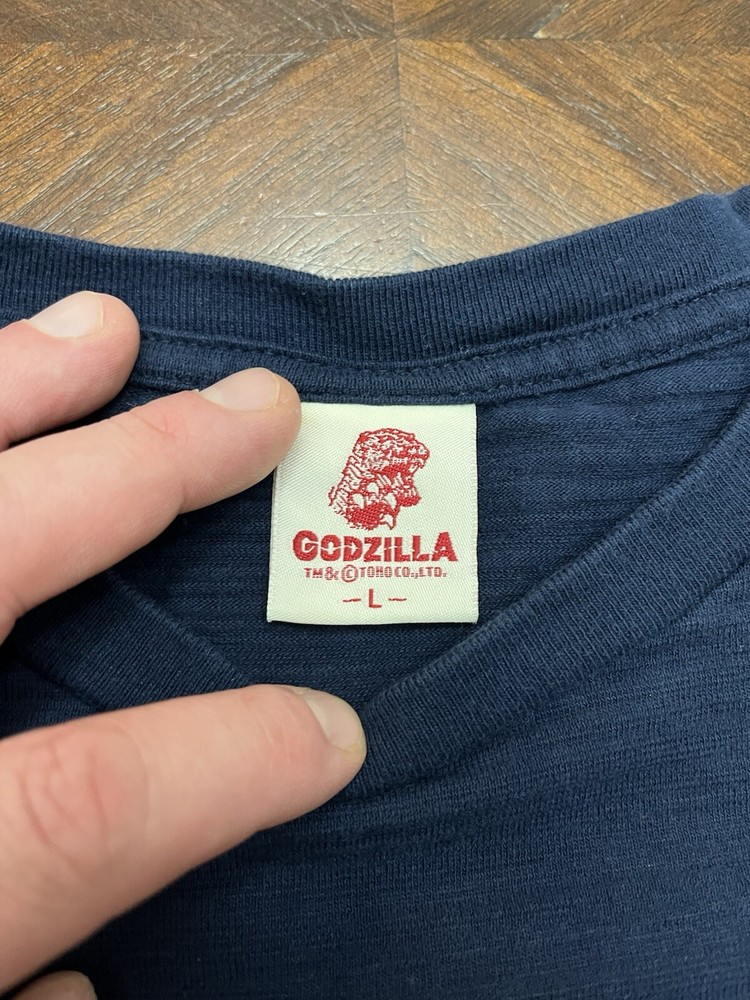 Godzilla Shirt Mens Large Blue S/S TOHO Co Ukiyoe Wave Attack Japan in great condition size L Mens...
