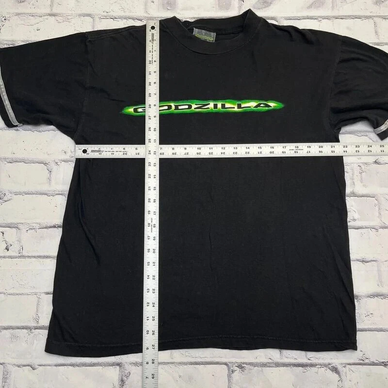 Up for sale is a vintage 1998 Men's Godzilla movie promotion shirt in size XL, please see the photos for measurements. INFORMATION AND DEFECTS ; CONDITION - Preowned DEFECTS - fading to the overall black color of the shirt as well as a couple of scuff defect markings, a few small holes, and wear to the graphic print. OVERALL ITEM GRADE - 8/10 *PLEASE SEE PHOTOS FOR AN ACCURATE DEPICTION! Shipping is handled as soon as the order is confirmed, some orders ship the same day. ASK FOR DISCOUNTS , DEALS , AND BUNDLES ! WE ARE OPEN TO NEGOTATION ON NEARLY EVERY ITEM! THANK YOU FOR VISITING OUR STORE !