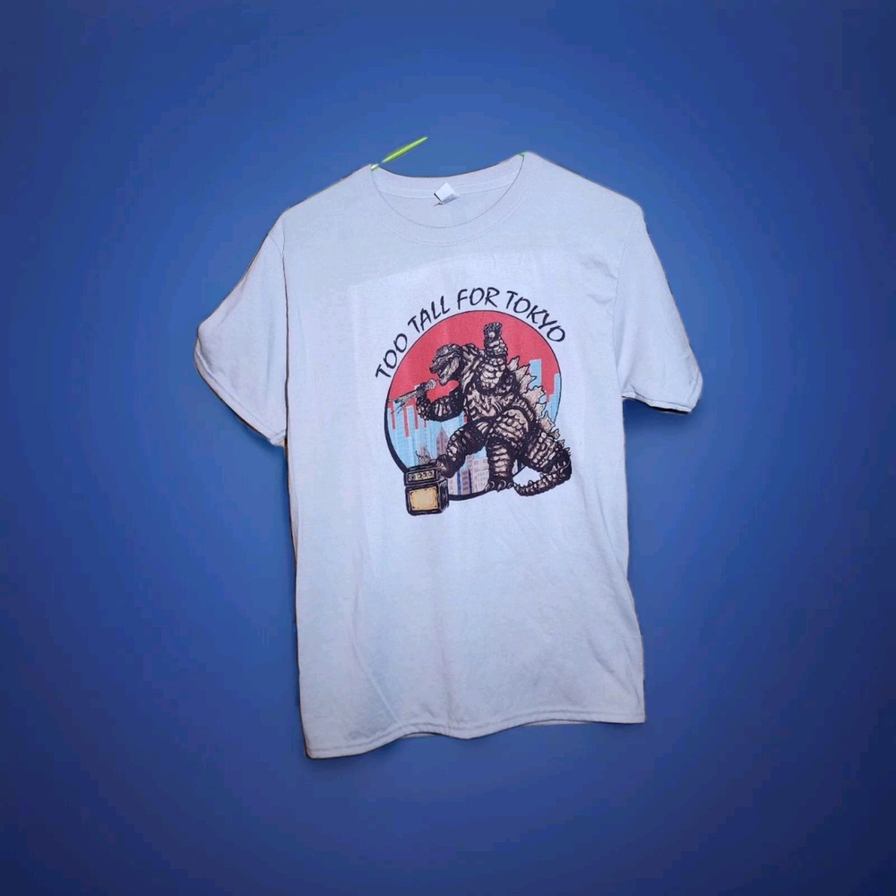 The "Godzilla Shirt" is a men's T-shirt featuring the iconic character Godzilla. It comes in a size small and has a multicolor design, making it a vibrant and eye-catching addition to any wardrobe. Perfect for fans of the Godzilla franchise, this regular-sized T-shirt allows you to show off your love for the legendary monster in style.