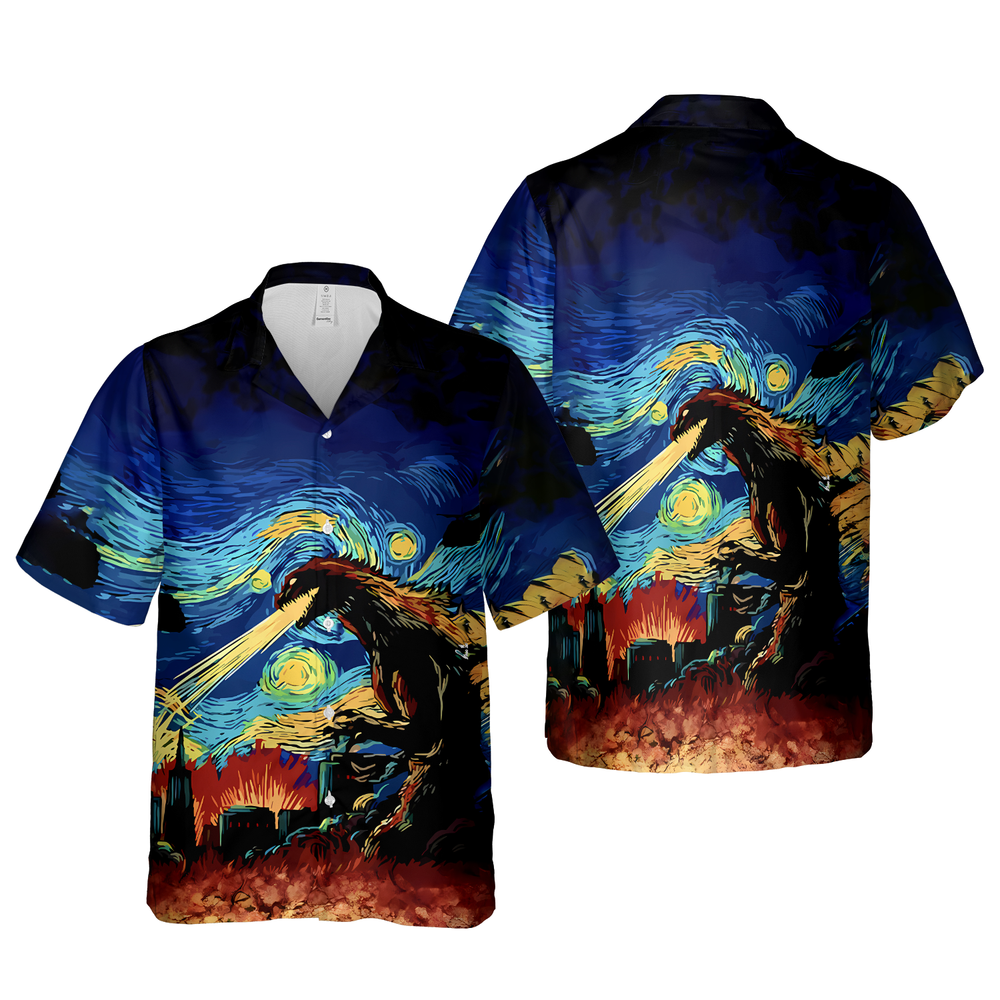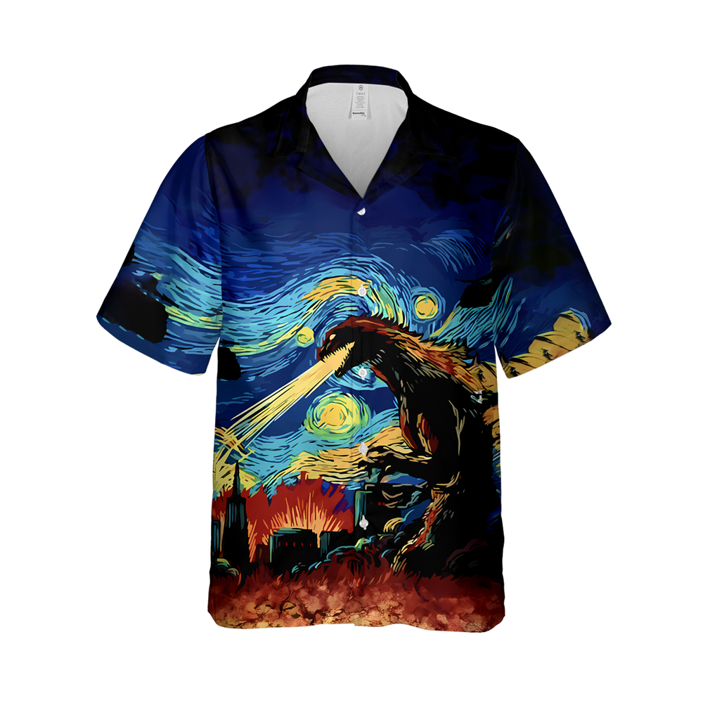 Van Gogh Godzilla Starry Night Hawaiian Shirt Unique Graphic Tee Gift Idea