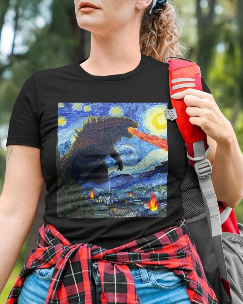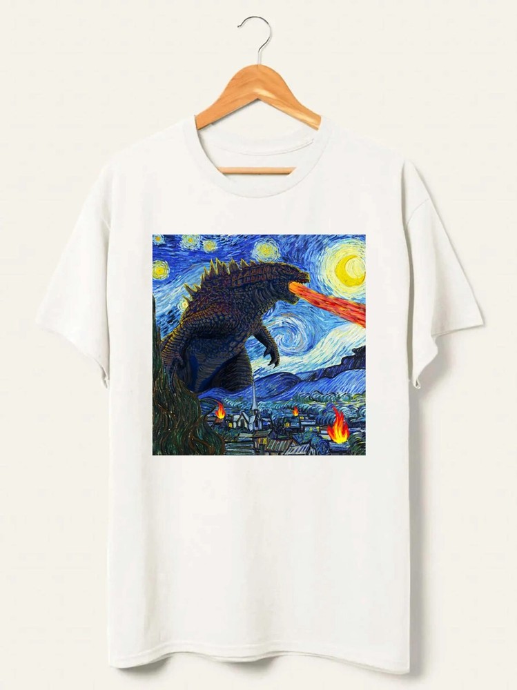 Love this unique Godzilla x Van Gogh design—it’s a perfect mashup for art and monster fans! The shirt is super soft, fits just right, and the print quality is crisp. So many color options to match any style. An awesome conversation starter—highly recommend grabbing one!