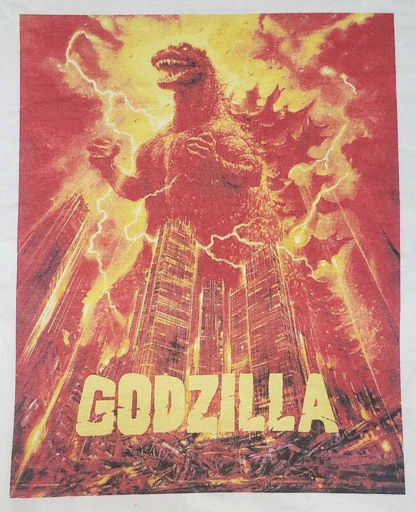 Godzilla Stomping in City Flaming Bolt Shirt White Godzilla Stomping in City Flaming Bolt Shirt White Godzilla stomping through the city in yellow, orange and red tones on a white shirt. 100% cotton Wash cold; dry low Imported Listed in men's/unisex sizes Please check our other listings Pictures sell! Auctiva offers Free Image Hosting and Editing. The complete eBay Selling Solution. Track Page Views With Auctiva's Counter
