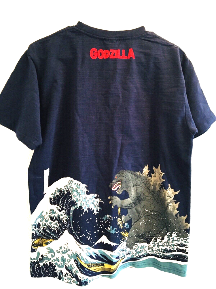Godzilla T Shirt Graphic Size XL (Runs Smaller see measurements below) Blue Double Side Print Rare NWT Japanese Print You won't find another. Top to bottom measure 28" Pit to pit measure 21"