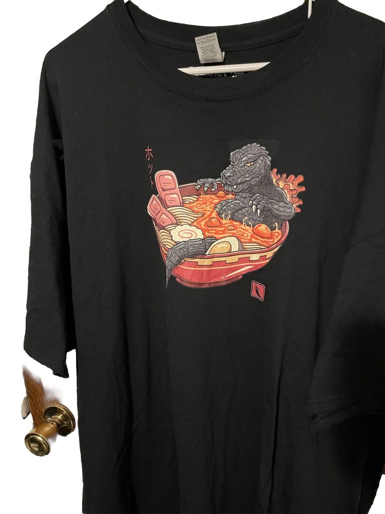 The product is a Godzilla T-shirt in size 3XL for men. The shirt features a design or branding related to the iconic monster, Godzilla. This regular size T-shirt is suitable for those who typically wear 3XL. It is a comfortable and stylish clothing option for fans of Godzilla or anyone looking to add a unique and eye-catching piece to their wardrobe. Wore once in great shape