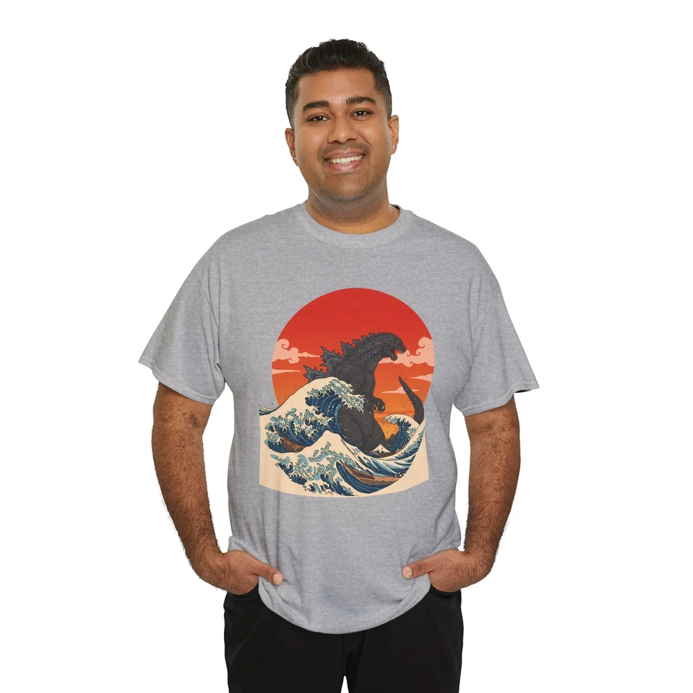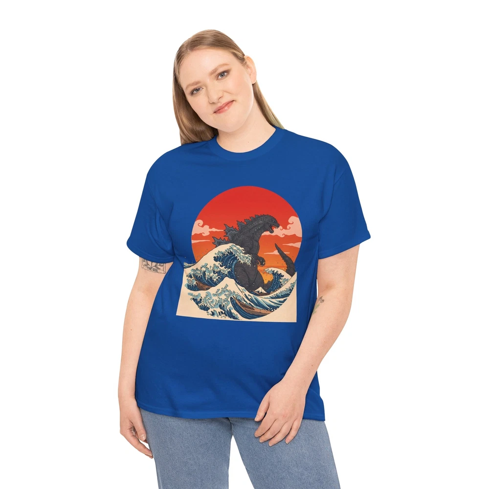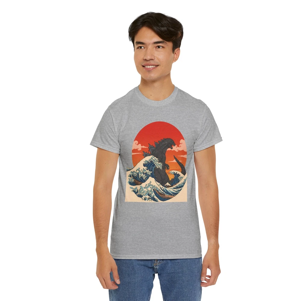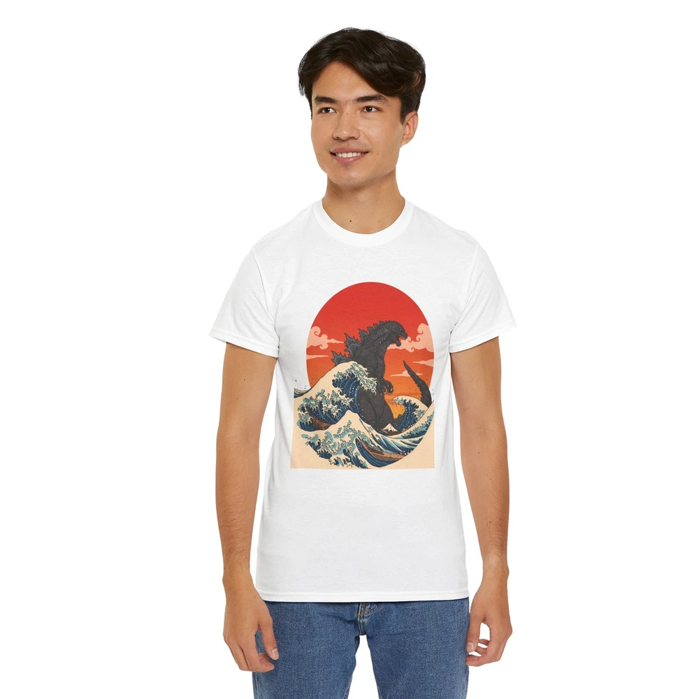 IMPERIAL S M L XL 2XL 3XL 4XL 5XL Width, in 18.00 20.00 22.00 24.00 26.00 28.00 30.00 32.00 Length, in 28.00 29.00 30.00 31.00 32.00 33.00 34.00 35.00 Sleeve length (from center back), in 15.10 16.50 18.00 19.50 21.00 22.40 23.70 25.00 Size tolerance, in 1.50 1.50 1.50 1.50 1.50 1.50 1.50 1.50 ------------------------------------------------------------------------------------------------------------------------------------------------------------------------------ METRIC S M L XL 2XL 3XL 4XL 5XL Width, cm 45.72 50.80 55.88 60.96 66.04 71.12 76.20 81.28 Length, cm 71.12 73.66 76.20 78.74 81.28 83.82 86.36 88.90 Sleeve length (from center back), cm 38.35 41.91 45.72 49.53 53.34 56.90 60.20 63.50 Size tolerance, cm 3.81 3.81 3.81 3.81 3.81 3.81 3.81 3.81 ----------------------------------------------------------------------------------------------------------------------------------------------------------------------------- Unleash the beast with our Godzilla T-Shirts , the ultimate apparel for fans of iconic monsters, epic battles, and classic sci-fi thrillers. Perfect for movie enthusiasts, kaiju lovers, and anyone who appreciates legendary creatures, these Godzilla graphic tees bring bold style and fierce energy to your wardrobe. Made from 100% ethically sourced U.S. cotton , our shirts use a medium-weight fabric (5.3 oz/yd² or 180 g/m²) for year-round comfort and outstanding durability. The classic fit and crew neckline deliver a relaxed yet timeless look, ideal for casual days, fan conventions, movie nights, or everyday wear. Each shirt includes a tear-away label for a smooth, irritation-free experience and is produced following the U.S. Cotton Trust Protocol and Oeko-Tex certification for quality and sustainability. Add some monster-sized personality to your outfits or surprise a Godzilla fan with the perfect gift. Our Godzilla graphic tees combine comfort, sustainability, and larger-than-life style for any kaiju enthusiast. Whether you?re shopping for a gift or treating yourself, our cat-themed t-shirts make a great choice for casual wear, lounging at home with your furry companion, or adding a little cattitude to your everyday style. The unisex heavy cotton tee is the basic staple of any wardrobe. It is the foundation upon which casual fashion grows. All it needs is a personalized design to elevate things to profitability. The specially spun fibers provide a smooth surface for premium printing vividity and sharpness. No side seams mean there are no itchy interruptions under the arms. The shoulders have tape for improved durability. .: Made with medium fabric (5.3 oz/yd² (180 g/m²)) consisting of 100% cotton for year-round comfort that is sustainable and highly durable. .: The classic fit of this shirt ensures a comfy, relaxed wear while the crew neckline adds that neat, timeless look that can blend into any occasion, casual or semi-formal. .: The tear-away label means a scratch-free experience with no irritation or discomfort whatsoever. .: Made using 100% US cotton that is ethically grown and harvested. Gildan is also a proud member of the US Cotton Trust Protocol ensuring ethical and sustainable means of production. This blank tee is certified by Oeko-Tex for safety and quality assurance. The classic fit ensures a comfy, relaxed wear, while the crew neckline adds a neat, timeless look suitable for any occasion, casual or semi-formal. The tear-away label provide a scratch-free experience, ensuring no irritation or discomfort. Key Features: - **Shoulder Tape**: Twill tape covers the shoulder seams to stabilize the back of the garment and prevent stretching. - **No Side Seams**: Knitted in one piece using tubular knit, reducing fabric waste and making the garment more attractive. - **Ribbed Knit Collar**: Highly elastic ribbed knit collar helps retain its shape. - **Durable Fabric**: Specially spun fibers create a smooth surface for premium printing vividity and sharpness. Care Instructions: - Machine wash: warm (max 40C or 105F) - Non-chlorine bleach as needed - Tumble dry: medium - Do not iron - Do not dry clean This unisex heavy cotton tee is the foundation of casual fashion, providing a smooth surface for vibrant and sharp prints. Made from ethically grown and harvested cotton. EU representative : Invicticonte LLC, 2105 Vista Oeste St NW Suite E 1187, Albuquerque, NM, 87120, US Product information : Gildan 5000, 2 year warranty in EU and Northern Ireland as per Directive 1999/44/EC Warnings, Hazard : For adults, Care instructions : Machine wash: warm (max 40C or 105F), Non-chlorine: bleach as needed, Tumble dry: medium, Do not iron, Do not dryclean Keywords: Godzilla t-shirt, kaiju graphic tee, monster movie shirt, sci-fi Godzilla apparel, Godzilla fan shirt, classic movie t-shirt, monster lover tee, Godzilla gift shirt, giant monster graphic tee, epic creature t-shirt.