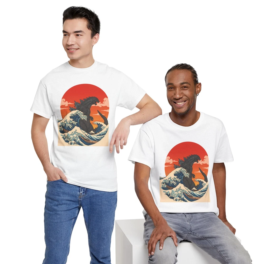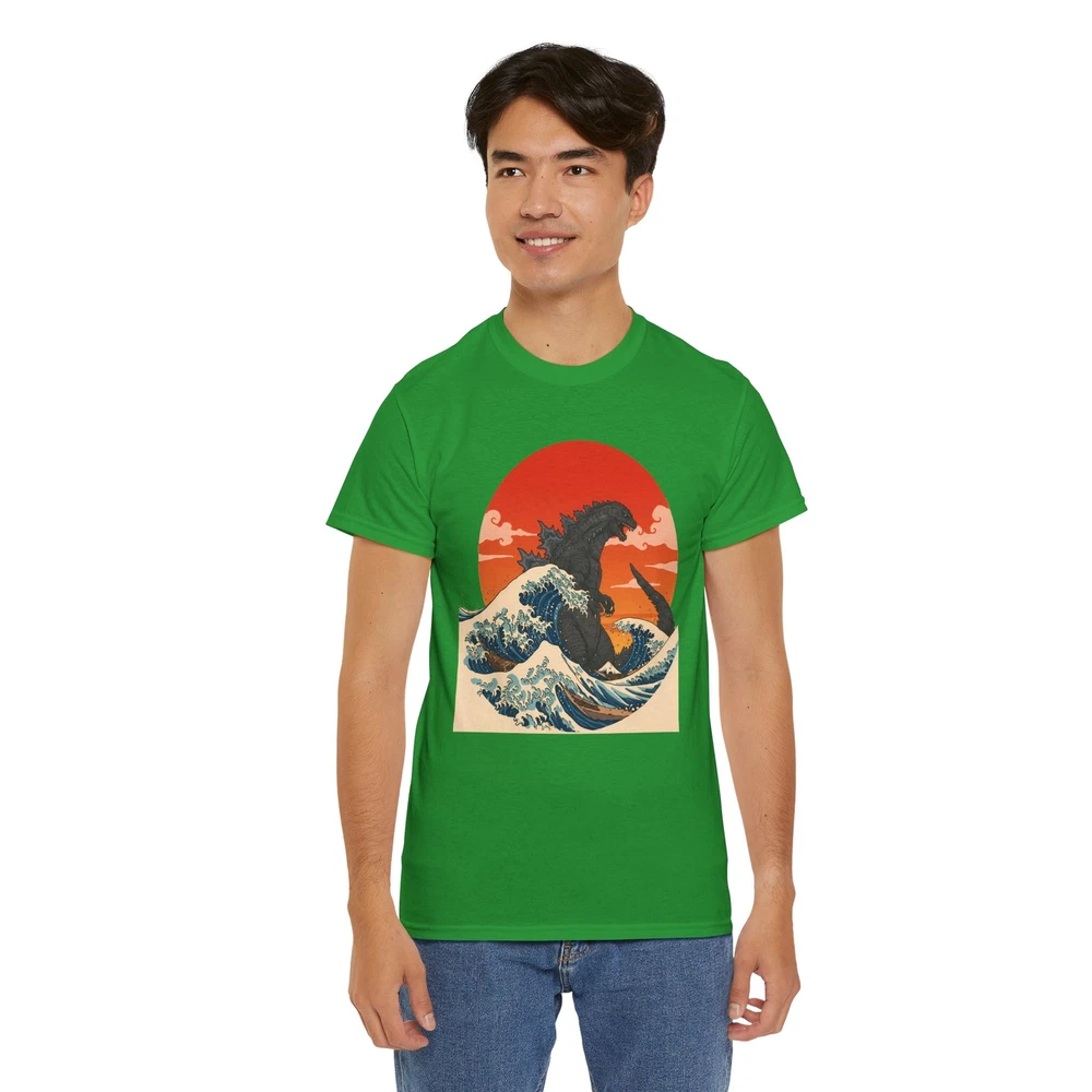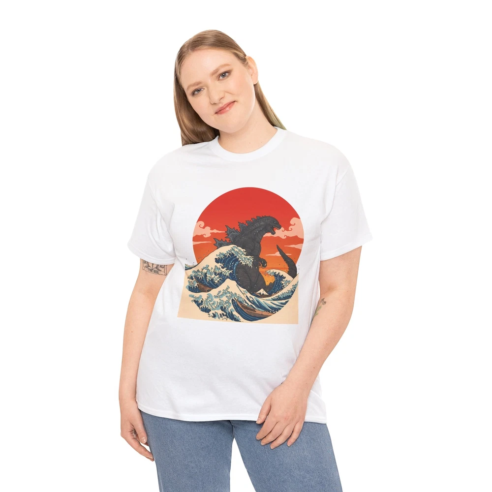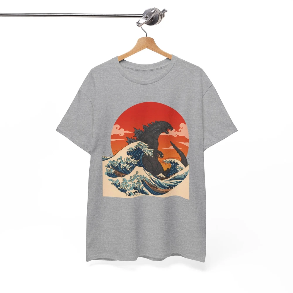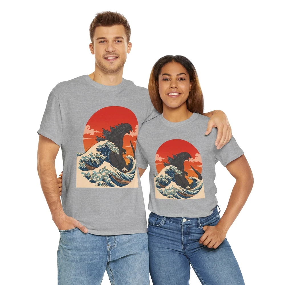 IMPERIAL S M L XL 2XL 3XL 4XL 5XL Width, in 18.00 20.00 22.00 24.00 26.00 28.00 30.00 32.00 Length, in 28.00 29.00 30.00 31.00 32.00 33.00 34.00 35.00 Sleeve length (from center back), in 15.10 16.50 18.00 19.50 21.00 22.40 23.70 25.00 Size tolerance, in 1.50 1.50 1.50 1.50 1.50 1.50 1.50 1.50 ------------------------------------------------------------------------------------------------------------------------------------------------------------------------------ METRIC S M L XL 2XL 3XL 4XL 5XL Width, cm 45.72 50.80 55.88 60.96 66.04 71.12 76.20 81.28 Length, cm 71.12 73.66 76.20 78.74 81.28 83.82 86.36 88.90 Sleeve length (from center back), cm 38.35 41.91 45.72 49.53 53.34 56.90 60.20 63.50 Size tolerance, cm 3.81 3.81 3.81 3.81 3.81 3.81 3.81 3.81 ----------------------------------------------------------------------------------------------------------------------------------------------------------------------------- Unleash the beast with our Godzilla T-Shirts , the ultimate apparel for fans of iconic monsters, epic battles, and classic sci-fi thrillers. Perfect for movie enthusiasts, kaiju lovers, and anyone who appreciates legendary creatures, these Godzilla graphic tees bring bold style and fierce energy to your wardrobe. Made from 100% ethically sourced U.S. cotton , our shirts use a medium-weight fabric (5.3 oz/yd² or 180 g/m²) for year-round comfort and outstanding durability. The classic fit and crew neckline deliver a relaxed yet timeless look, ideal for casual days, fan conventions, movie nights, or everyday wear. Each shirt includes a tear-away label for a smooth, irritation-free experience and is produced following the U.S. Cotton Trust Protocol and Oeko-Tex certification for quality and sustainability. Add some monster-sized personality to your outfits or surprise a Godzilla fan with the perfect gift. Our Godzilla graphic tees combine comfort, sustainability, and larger-than-life style for any kaiju enthusiast. Whether you?re shopping for a gift or treating yourself, our cat-themed t-shirts make a great choice for casual wear, lounging at home with your furry companion, or adding a little cattitude to your everyday style. The unisex heavy cotton tee is the basic staple of any wardrobe. It is the foundation upon which casual fashion grows. All it needs is a personalized design to elevate things to profitability. The specially spun fibers provide a smooth surface for premium printing vividity and sharpness. No side seams mean there are no itchy interruptions under the arms. The shoulders have tape for improved durability. .: Made with medium fabric (5.3 oz/yd² (180 g/m²)) consisting of 100% cotton for year-round comfort that is sustainable and highly durable. .: The classic fit of this shirt ensures a comfy, relaxed wear while the crew neckline adds that neat, timeless look that can blend into any occasion, casual or semi-formal. .: The tear-away label means a scratch-free experience with no irritation or discomfort whatsoever. .: Made using 100% US cotton that is ethically grown and harvested. Gildan is also a proud member of the US Cotton Trust Protocol ensuring ethical and sustainable means of production. This blank tee is certified by Oeko-Tex for safety and quality assurance. The classic fit ensures a comfy, relaxed wear, while the crew neckline adds a neat, timeless look suitable for any occasion, casual or semi-formal. The tear-away label provide a scratch-free experience, ensuring no irritation or discomfort. Key Features: - **Shoulder Tape**: Twill tape covers the shoulder seams to stabilize the back of the garment and prevent stretching. - **No Side Seams**: Knitted in one piece using tubular knit, reducing fabric waste and making the garment more attractive. - **Ribbed Knit Collar**: Highly elastic ribbed knit collar helps retain its shape. - **Durable Fabric**: Specially spun fibers create a smooth surface for premium printing vividity and sharpness. Care Instructions: - Machine wash: warm (max 40C or 105F) - Non-chlorine bleach as needed - Tumble dry: medium - Do not iron - Do not dry clean This unisex heavy cotton tee is the foundation of casual fashion, providing a smooth surface for vibrant and sharp prints. Made from ethically grown and harvested cotton. EU representative : Invicticonte LLC, 2105 Vista Oeste St NW Suite E 1187, Albuquerque, NM, 87120, US Product information : Gildan 5000, 2 year warranty in EU and Northern Ireland as per Directive 1999/44/EC Warnings, Hazard : For adults, Care instructions : Machine wash: warm (max 40C or 105F), Non-chlorine: bleach as needed, Tumble dry: medium, Do not iron, Do not dryclean Keywords: Godzilla t-shirt, kaiju graphic tee, monster movie shirt, sci-fi Godzilla apparel, Godzilla fan shirt, classic movie t-shirt, monster lover tee, Godzilla gift shirt, giant monster graphic tee, epic creature t-shirt.
