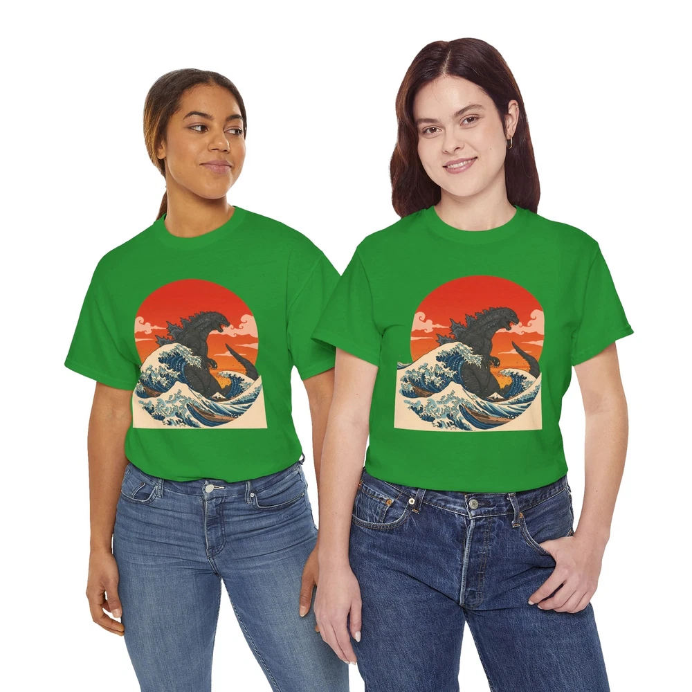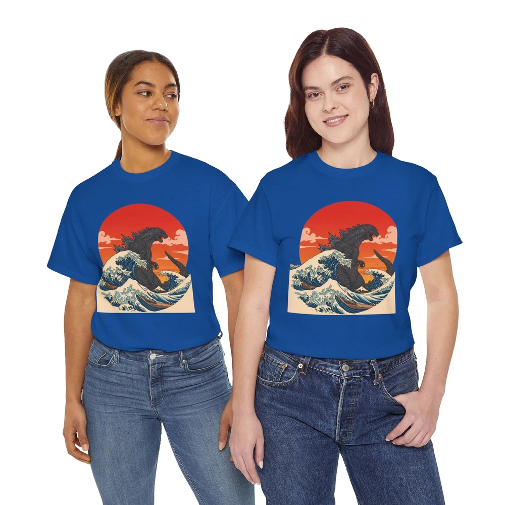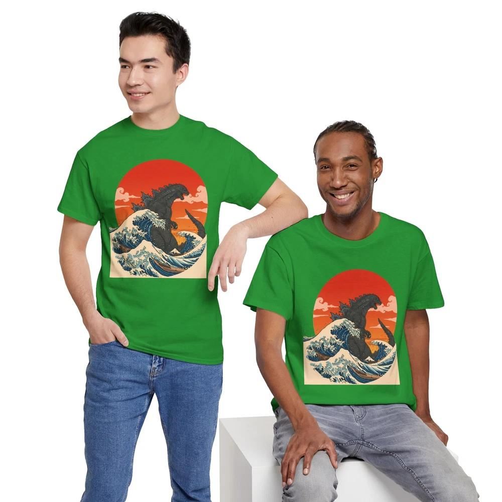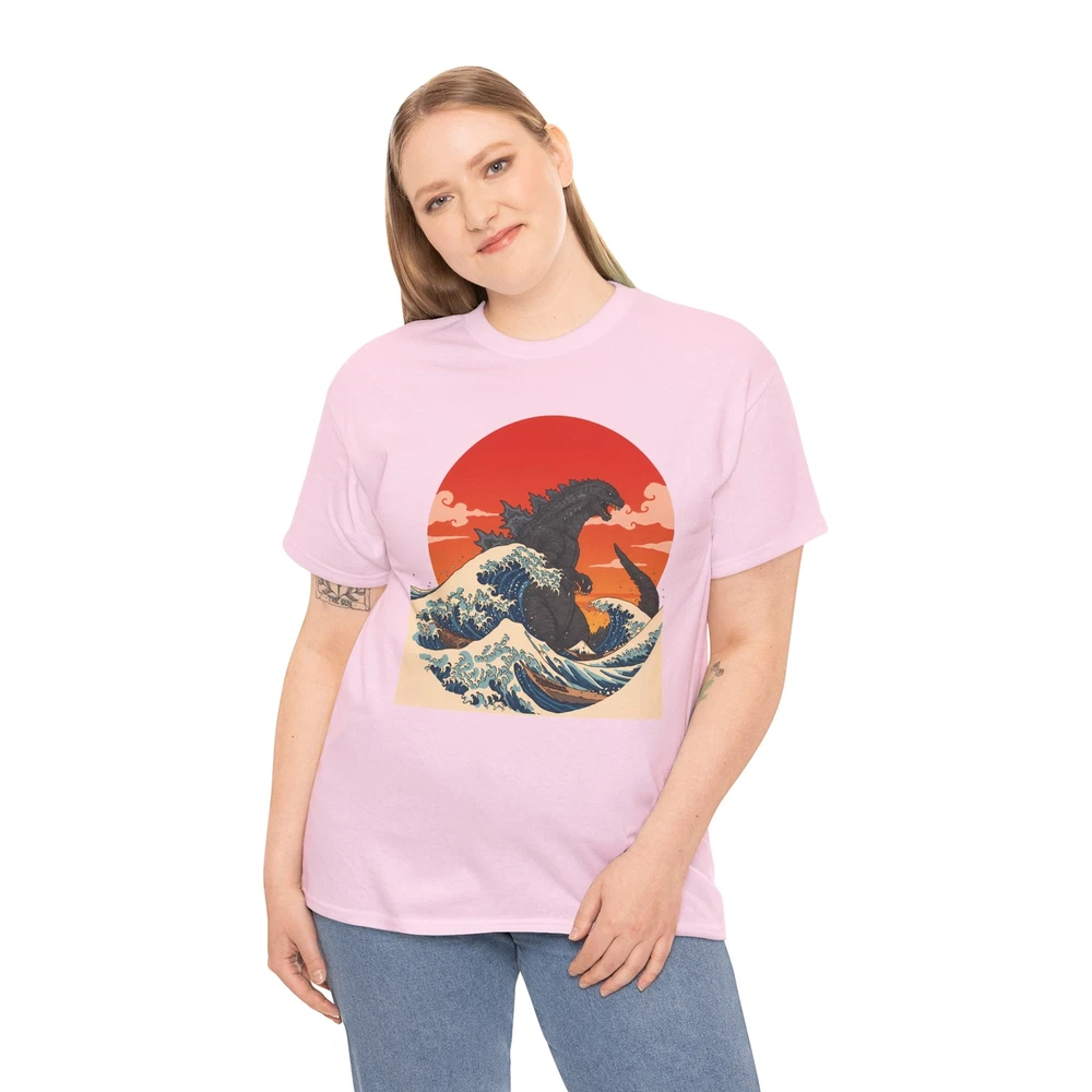 IMPERIAL S M L XL 2XL 3XL 4XL 5XL Width, in 18.00 20.00 22.00 24.00 26.00 28.00 30.00 32.00 Length, in 28.00 29.00 30.00 31.00 32.00 33.00 34.00 35.00 Sleeve length (from center back), in 15.10 16.50 18.00 19.50 21.00 22.40 23.70 25.00 Size tolerance, in 1.50 1.50 1.50 1.50 1.50 1.50 1.50 1.50 ------------------------------------------------------------------------------------------------------------------------------------------------------------------------------ METRIC S M L XL 2XL 3XL 4XL 5XL Width, cm 45.72 50.80 55.88 60.96 66.04 71.12 76.20 81.28 Length, cm 71.12 73.66 76.20 78.74 81.28 83.82 86.36 88.90 Sleeve length (from center back), cm 38.35 41.91 45.72 49.53 53.34 56.90 60.20 63.50 Size tolerance, cm 3.81 3.81 3.81 3.81 3.81 3.81 3.81 3.81 ----------------------------------------------------------------------------------------------------------------------------------------------------------------------------- Unleash the beast with our Godzilla T-Shirts , the ultimate apparel for fans of iconic monsters, epic battles, and classic sci-fi thrillers. Perfect for movie enthusiasts, kaiju lovers, and anyone who appreciates legendary creatures, these Godzilla graphic tees bring bold style and fierce energy to your wardrobe. Made from 100% ethically sourced U.S. cotton , our shirts use a medium-weight fabric (5.3 oz/yd² or 180 g/m²) for year-round comfort and outstanding durability. The classic fit and crew neckline deliver a relaxed yet timeless look, ideal for casual days, fan conventions, movie nights, or everyday wear. Each shirt includes a tear-away label for a smooth, irritation-free experience and is produced following the U.S. Cotton Trust Protocol and Oeko-Tex certification for quality and sustainability. Add some monster-sized personality to your outfits or surprise a Godzilla fan with the perfect gift. Our Godzilla graphic tees combine comfort, sustainability, and larger-than-life style for any kaiju enthusiast. Whether you?re shopping for a gift or treating yourself, our cat-themed t-shirts make a great choice for casual wear, lounging at home with your furry companion, or adding a little cattitude to your everyday style. The unisex heavy cotton tee is the basic staple of any wardrobe. It is the foundation upon which casual fashion grows. All it needs is a personalized design to elevate things to profitability. The specially spun fibers provide a smooth surface for premium printing vividity and sharpness. No side seams mean there are no itchy interruptions under the arms. The shoulders have tape for improved durability. .: Made with medium fabric (5.3 oz/yd² (180 g/m²)) consisting of 100% cotton for year-round comfort that is sustainable and highly durable. .: The classic fit of this shirt ensures a comfy, relaxed wear while the crew neckline adds that neat, timeless look that can blend into any occasion, casual or semi-formal. .: The tear-away label means a scratch-free experience with no irritation or discomfort whatsoever. .: Made using 100% US cotton that is ethically grown and harvested. Gildan is also a proud member of the US Cotton Trust Protocol ensuring ethical and sustainable means of production. This blank tee is certified by Oeko-Tex for safety and quality assurance. The classic fit ensures a comfy, relaxed wear, while the crew neckline adds a neat, timeless look suitable for any occasion, casual or semi-formal. The tear-away label provide a scratch-free experience, ensuring no irritation or discomfort. Key Features: - **Shoulder Tape**: Twill tape covers the shoulder seams to stabilize the back of the garment and prevent stretching. - **No Side Seams**: Knitted in one piece using tubular knit, reducing fabric waste and making the garment more attractive. - **Ribbed Knit Collar**: Highly elastic ribbed knit collar helps retain its shape. - **Durable Fabric**: Specially spun fibers create a smooth surface for premium printing vividity and sharpness. Care Instructions: - Machine wash: warm (max 40C or 105F) - Non-chlorine bleach as needed - Tumble dry: medium - Do not iron - Do not dry clean This unisex heavy cotton tee is the foundation of casual fashion, providing a smooth surface for vibrant and sharp prints. Made from ethically grown and harvested cotton. EU representative : Invicticonte LLC, 2105 Vista Oeste St NW Suite E 1187, Albuquerque, NM, 87120, US Product information : Gildan 5000, 2 year warranty in EU and Northern Ireland as per Directive 1999/44/EC Warnings, Hazard : For adults, Care instructions : Machine wash: warm (max 40C or 105F), Non-chlorine: bleach as needed, Tumble dry: medium, Do not iron, Do not dryclean Keywords: Godzilla t-shirt, kaiju graphic tee, monster movie shirt, sci-fi Godzilla apparel, Godzilla fan shirt, classic movie t-shirt, monster lover tee, Godzilla gift shirt, giant monster graphic tee, epic creature t-shirt.