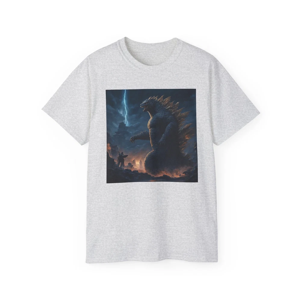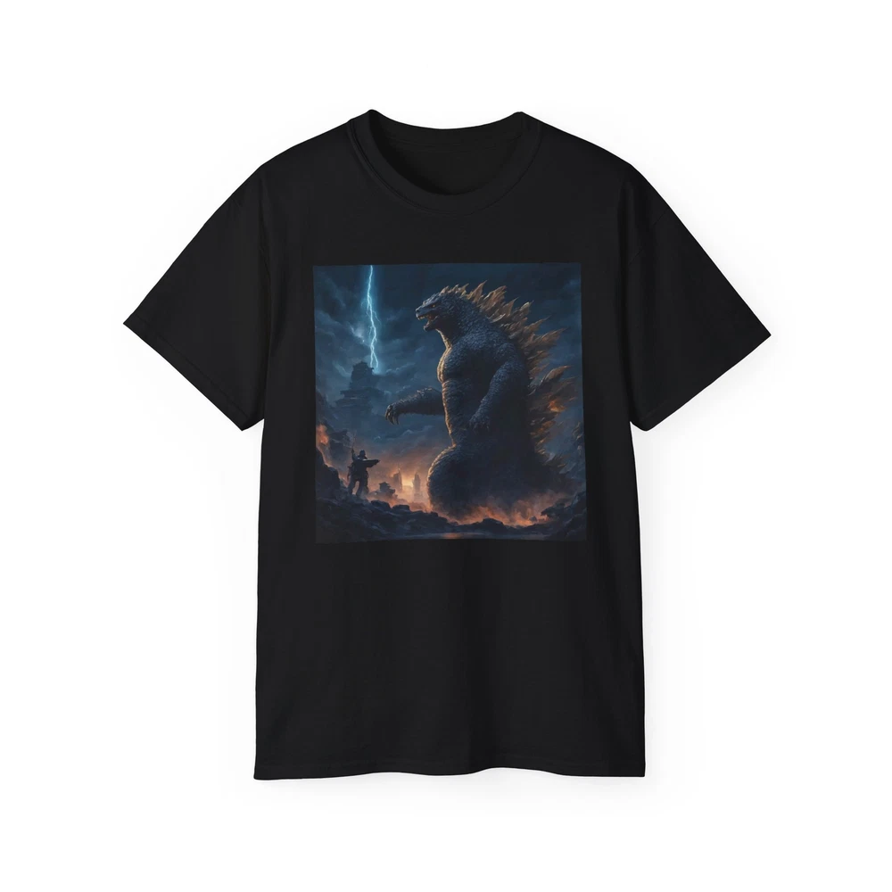 A Godzilla-themed t-shirt that is perfect for fans of the iconic monster. This unisex tee is made with high-quality cotton for a thicker vintage feel, making it suitable for everyday wear. The classic fit and crew neckline offer versatility for casual and semi-formal occasions, while the tear-away label provides a comfortable wearing experience. Ideal for Godzilla enthusiasts and those looking for a unique and stylish t-shirt. Product features - Bigger shirt size for extra comfort - Environmentally-friendly manufactured cotton - Classic fit with crew neckline for versatile wear - Ethically grown and harvested US cotton - Tear-away label for minimal skin irritations Care instructions - Machine wash: cold (max 30C or 90F) - Non-chlorine: bleach as needed - Do not tumble dry - Do not iron - Do not dryclean