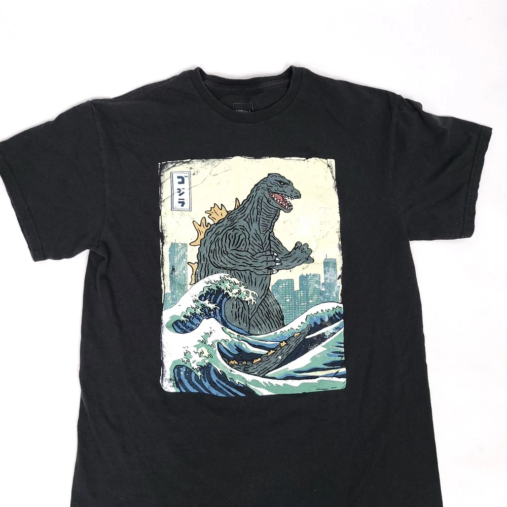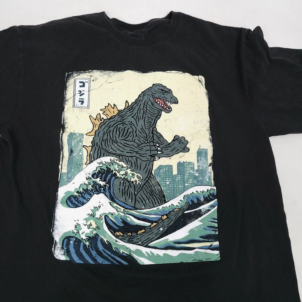 Godzilla The Great Wave Japanese Black T Shirt Size Medium Black Short Sleeve. Condition: the shirt is in pre-owned condition, please take a look at my photos for close examination. Measurements are included in my photos. I do offer combine shipping for my items, but please message me first. Thank you for your business!