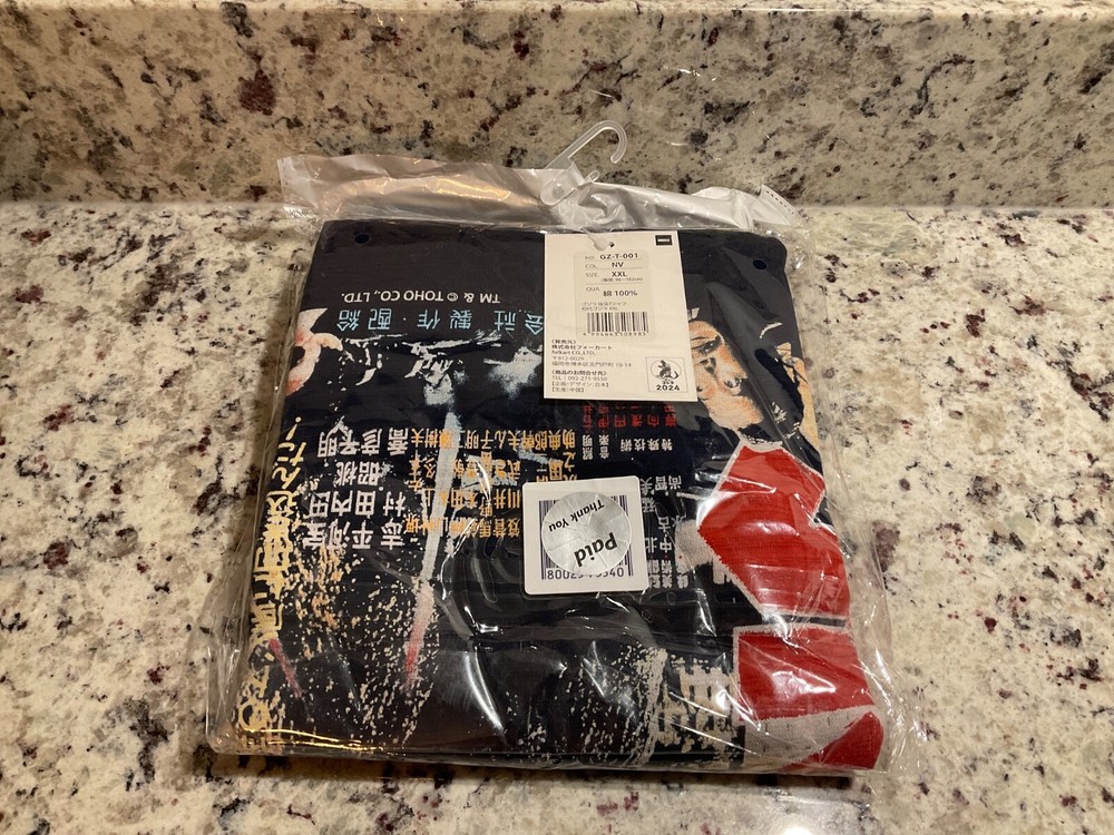 This Godzilla Toho King Of Monsters T-Shirt is a men's graphic tee in size large, featuring the iconic character Godzilla on the front in a blue color. Made of cotton material, the shirt has a crew neck and short sleeves, with a regular fit. Perfect for fans of the movie theme and Godzilla brand, this shirt is a great addition to any movie enthusiast's wardrobe.
