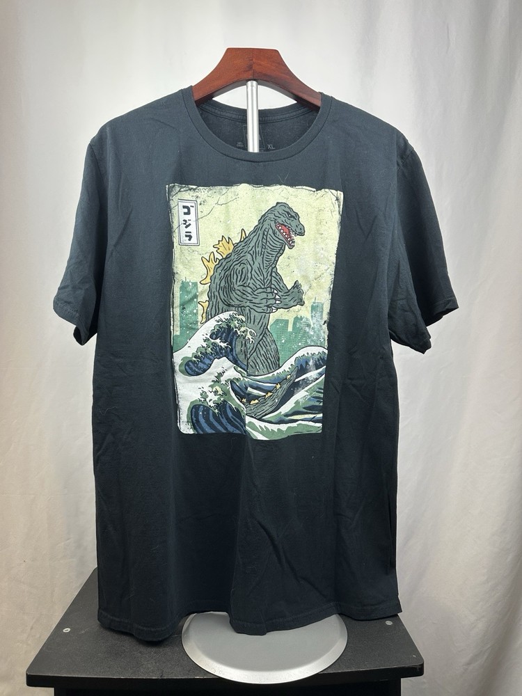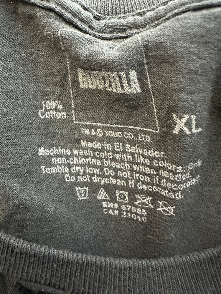 Show off your love for the King of Monsters with this black Godzilla T-shirt! Featuring a graphic print of the iconic monster, this short-sleeved shirt is perfect for any fan of the classic anime and 90s art. Made of comfortable cotton material, it's ideal for wearing during the summer, fall, or spring seasons. The crew neck and regular fit make it a stylish choice for any casual occasion. This Godzilla shirt is perfect for men who want to add a touch of nostalgia to their wardrobe. With its size XL and regular size type, it's a great addition for any fan of the character. Made in El Salvador, this T-shirt is part of the official Godzilla brand. Don't miss out on the chance to own this unique piece of clothing!