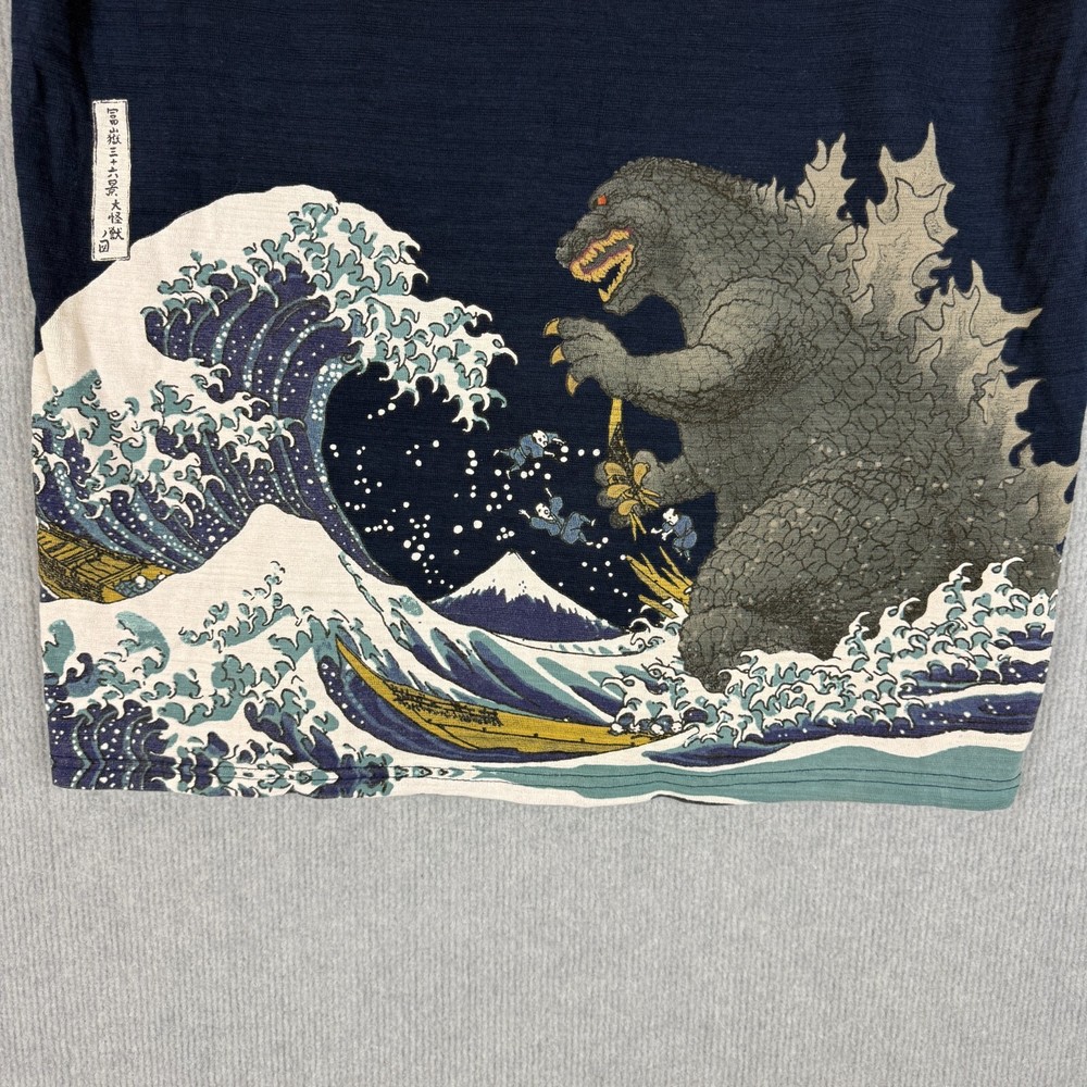 Godzilla Toho T Shirt Mens XL Navy Blue Ocean Wave Graphic Print Japanese Y2K - Our items are carefully examined, Measured, photographed and stored in a smoke free environment. - We accept 60 day free returns. If you are not satisfied we will do what it takes to make it right. - All orders are posted within 1 business day via Australia Post. Combined postage is available on all orders. - Please message with any questions. - Feedback is highly appreciated.