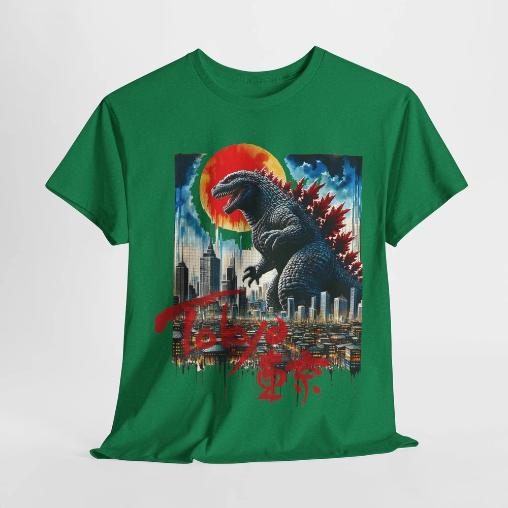 Stomp into style with this Godzilla Tokyo Japan tee! 100% cotton construction for supreme softness and durability Premium printing technology for vibrant, high-definition graphics Tagless design eliminates irritation and discomfort Reinforced shoulders for long-lasting wear This unisex heavy cotton tee is the perfect canvas to showcase your love for the legendary Godzilla. Crafted from ethically-sourced US cotton and certified by Oeko-Tex for safety, it's a sustainable, high-quality essential that will keep you comfortable all year round. Whether you're a lifelong Godzilla fanatic or just discovering the King of the Monsters, this shirt is a must-have. Slip it on to channel your inner kaiju at the next movie premiere, comic convention, or just for a casual day out. The classic fit and crew neckline ensure a polished, put-together look that can seamlessly transition from daytime to nighttime.