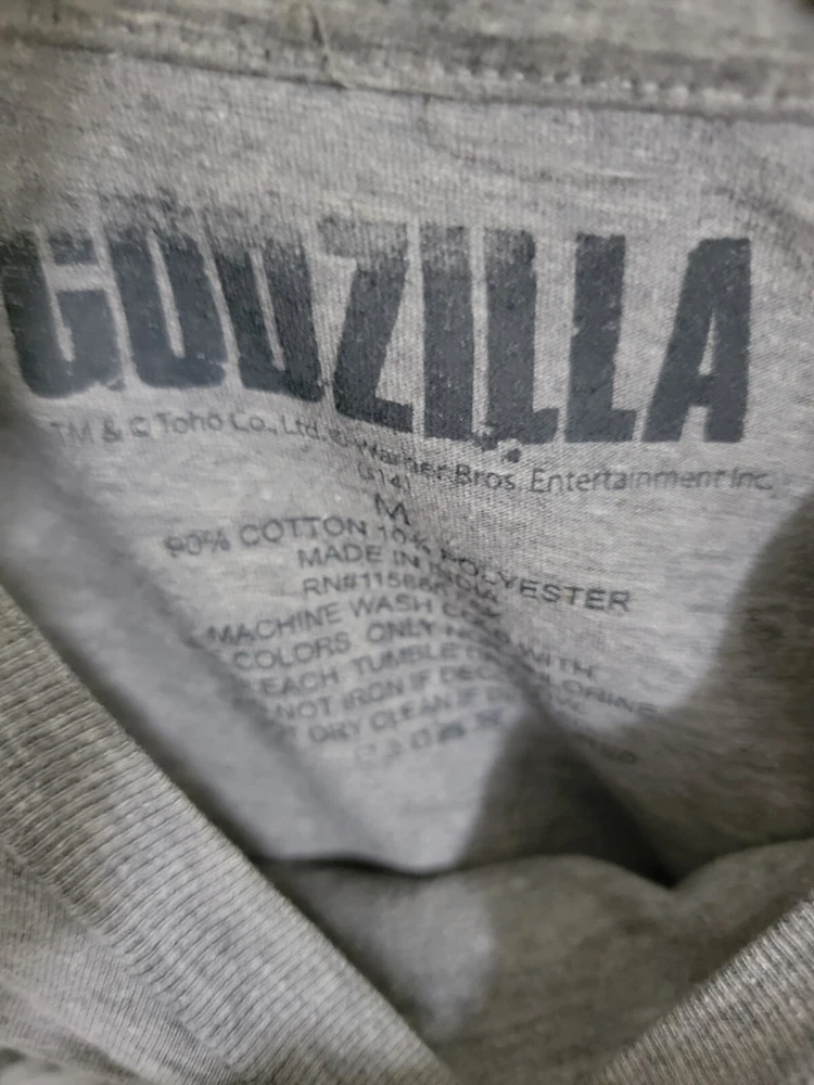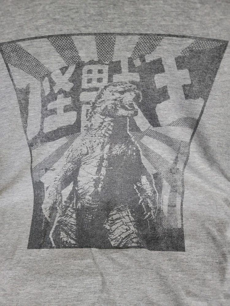 Godzilla Rising Sun T-Shirt Heather grey T-shirt from Godzilla with poster style design on front. 90% cotton; 10% polyester Wash cold; dry low Measurements are approximate with garment laying flat Pit to pit 18" Top of shoulder to bottom of sleeve 12" Top of shoulder to bottom of shirt 27" Freshly laundered No rips stains or weird smells Please examine all photos carefully as they are part of the description ***check out my store for other Godzilla t-shirts ***
