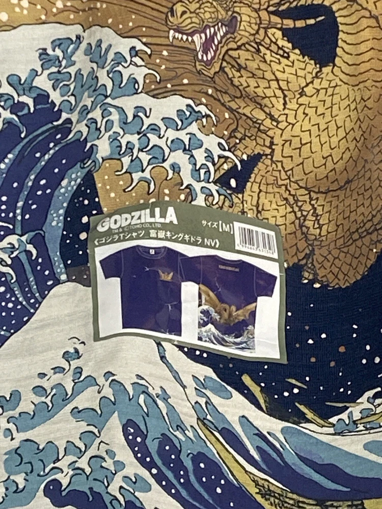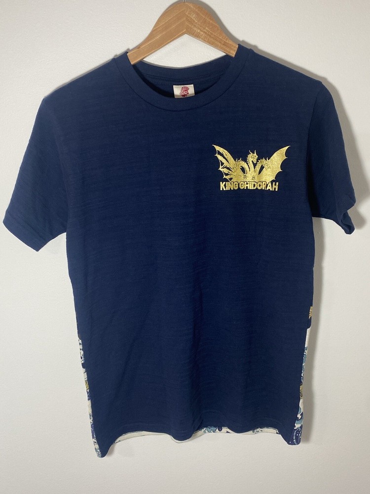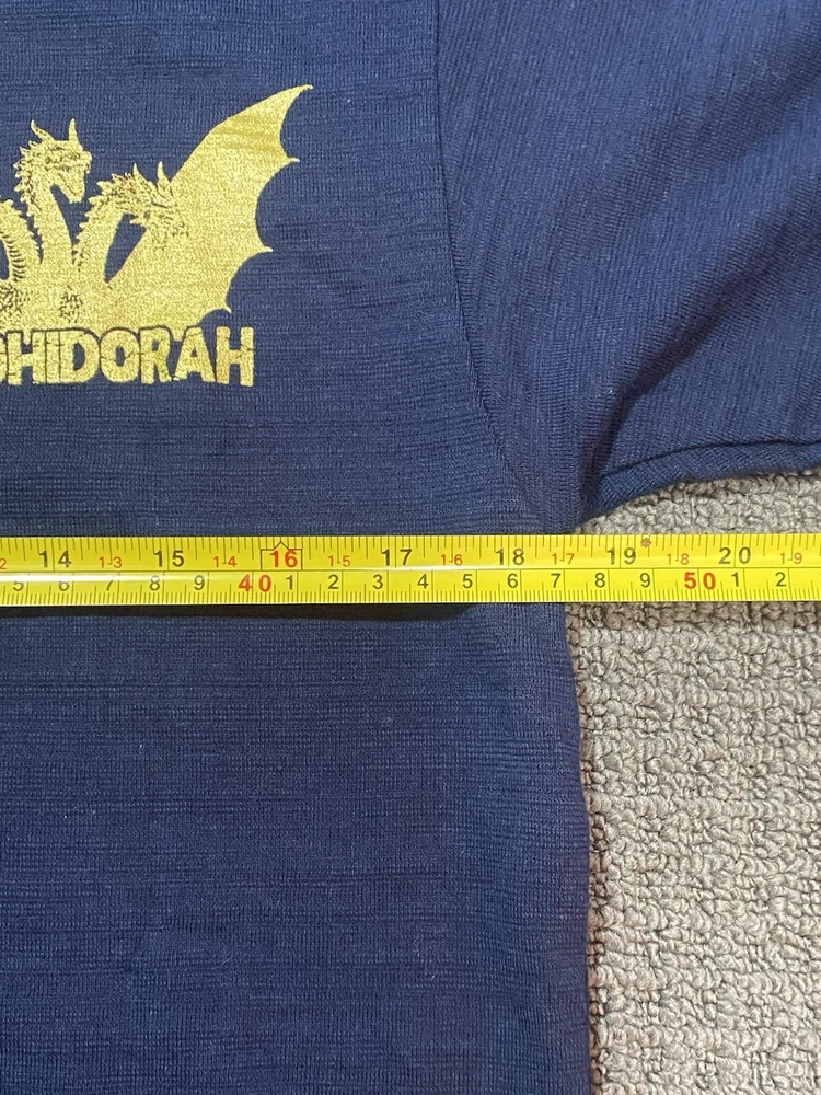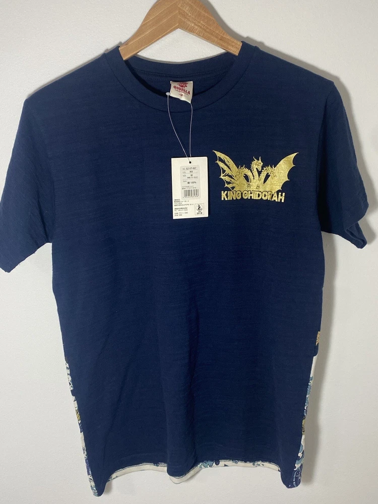This Godzilla T-shirt features a stunning depiction of King Ghidorah in Japanese Ukiyoe style. Made from 100% cotton, this slim-fit tee comes in black with traditional blue highlights, making it a stylish addition to any wardrobe. Available in XL size, it is perfect for men who appreciate Japanese culture and the legendary Godzilla franchise.This T-shirt is an official product of Godzilla, made in Japan with high-quality materials. It is perfect for casual wear, and its short sleeves make it ideal for warm weather. So, if you're a fan of King Ghidorah or just want to add a unique Japanese-inspired tee to your collection, this Godzilla T-shirt is a must-have. Measurements included are: Pit to Pit Front neck to bottom of shirt See photos for condition Sent via auspost