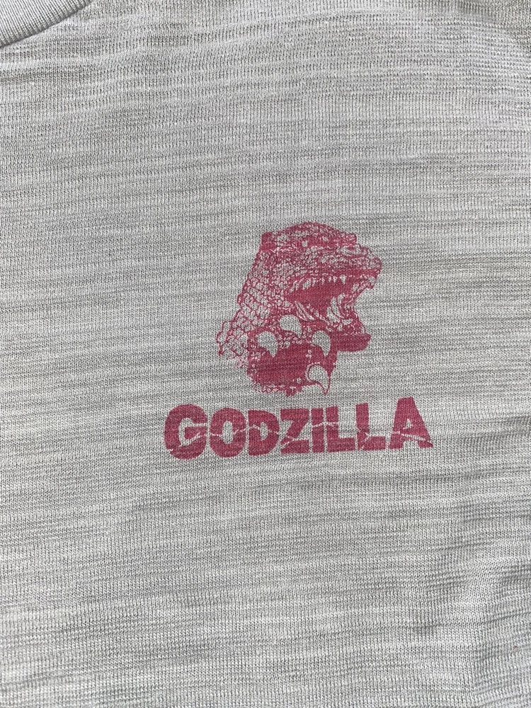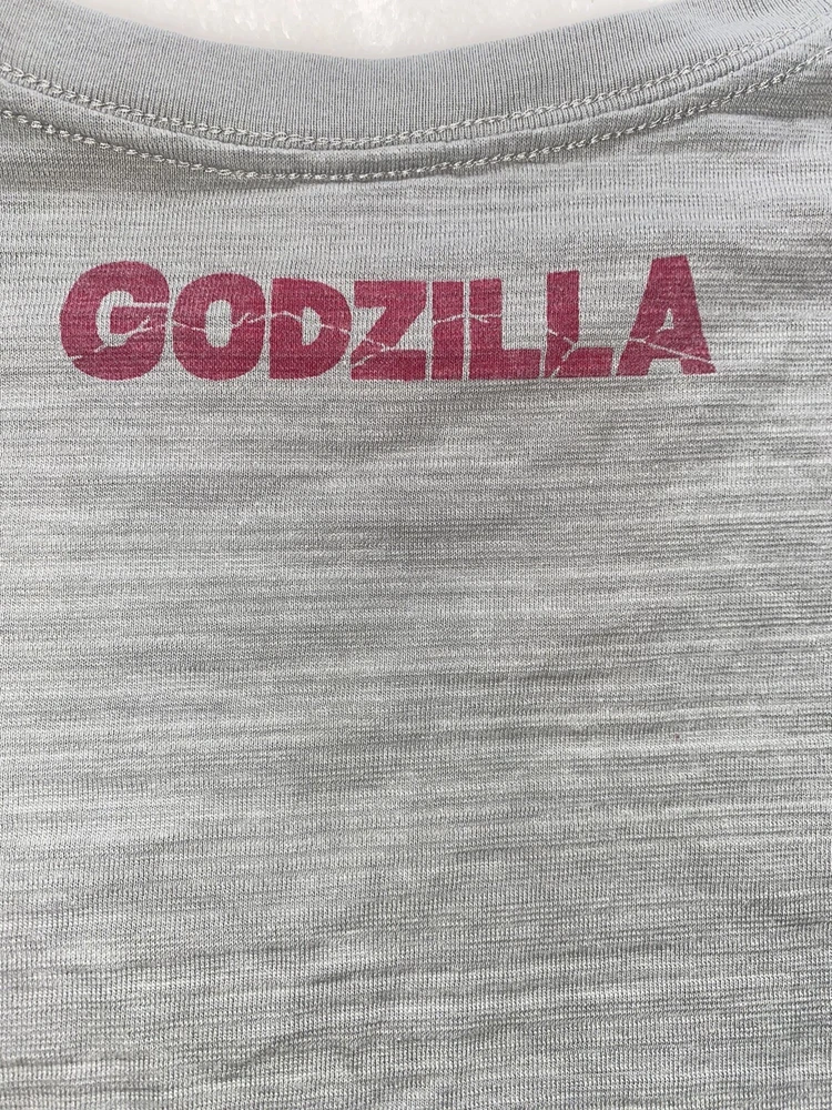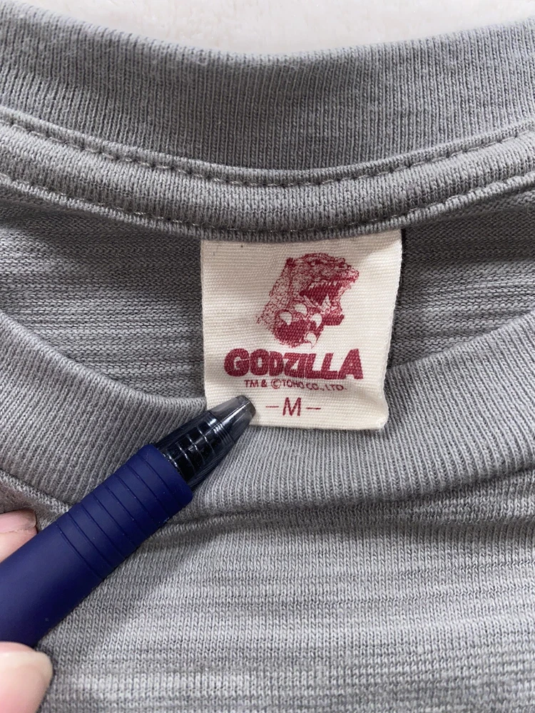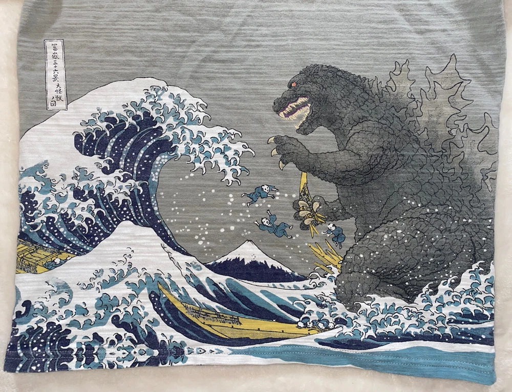Godzilla T-shirt Ukiyoe Japanese Traditional Print Wagara Gray Size Medium. The condition is Pre-owned. 100 Percent Authentic. Please examine the pictures carefully before purchase. Flaw shown in the last picture (small hole on the collar). Feel free to message me if you have any questions.