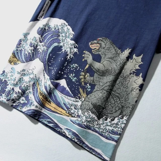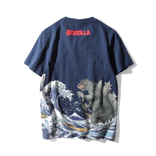 Godzilla T-shirt Ukiyoe Wave Print - Limited Edition - Navy Blue FREE SHIPPING! SHIPS WITHIN 3 BUSINESS DAYS Shirt runs slightly small. If in between sizes, please order one size up. Sizes: S size : length 25 in, Width 19 in, shoulders 17 in, Sleeve length 7 in M size : length 26 in, Width 19 in, shoulders 18 in, Sleeve length 7 in L size : length 27 in, Width 20 in, shoulders 18 in, Sleeve length 8 in XL size : length 28 in, Width 21 in, shoulders 19 in, Sleeve length 8 in XXL size : length 29 in, Width 22 in, shoulders 20 in, Sleeve length 8 in