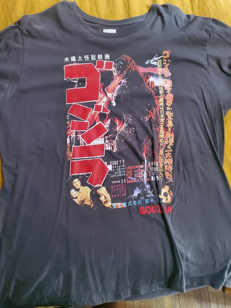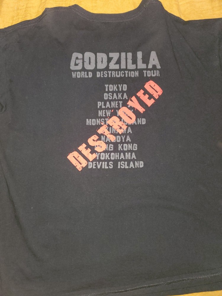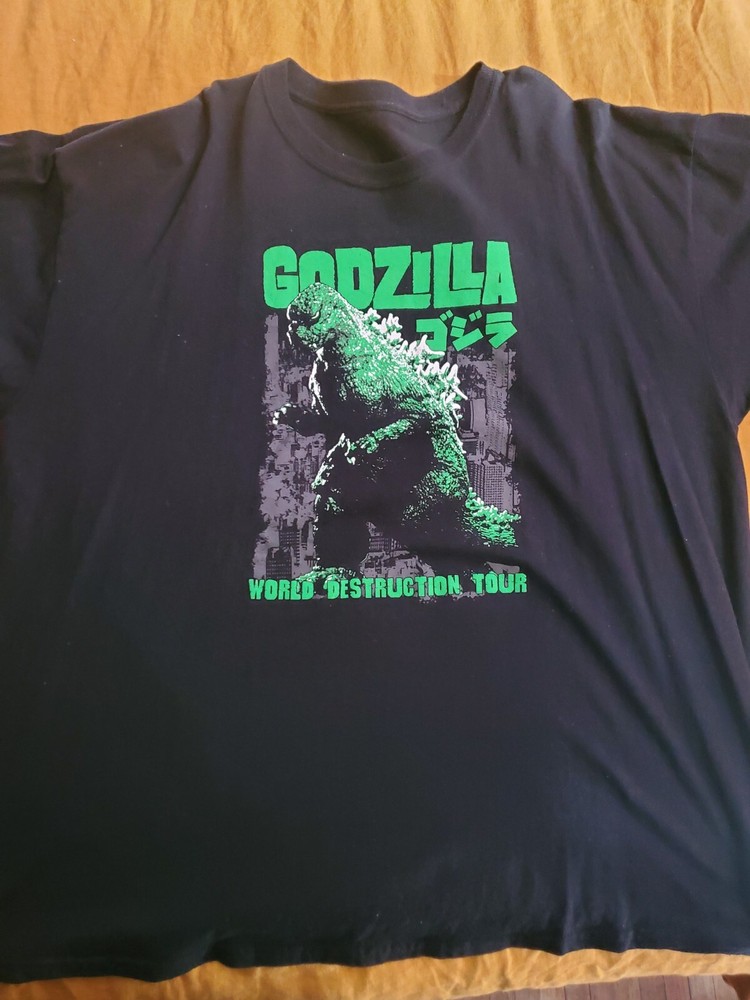 Just got this awesome Godzilla T-shirt bundle in 2XL—fits perfectly and super comfy! Both shirts have a cool vintage vibe from being pre-loved, but they're still in great shape. The designs are bold and the fabric is soft after washes. Great deal for any kaiju fan!