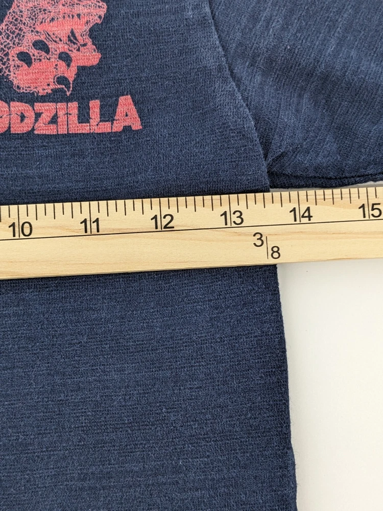 Thank you for taking the time to view my listing! This listing is for a Godzilla blue short sleeve t-shirt in size 130. I've taken pictures of the actual item you will receive. These are not stock photos. I'd be happy to provide additional pictures or answer any questions. USPS shipping is calculated to your zip code and you will receive a tracking number. eBay gives it's sellers a shipping discount that I pass on to my buyers. You will pay actual shipping with the discount. I combine shipping if you purchase multiple items. Smoke free home. I gladly accept returns and cancelations. Contact me within 14 days of delivery Ship items back within: 30 days of delivery Request a cancelation: before the item has shipped Conditions of return Buyers are responsible for return shipping costs. If the item is not returned in its original condition, the buyer is responsible for any loss in value. International Buyers eBay determines additional shipping and import charges through eBay International Shipping. It may take a while to get your item and these additional fees could be more than the Buy It Now price!