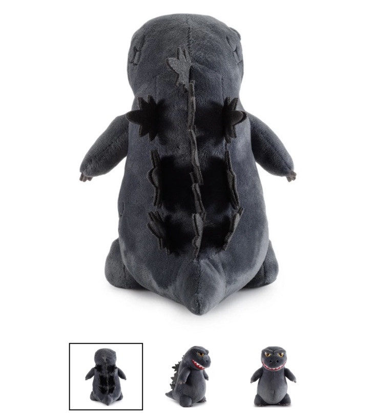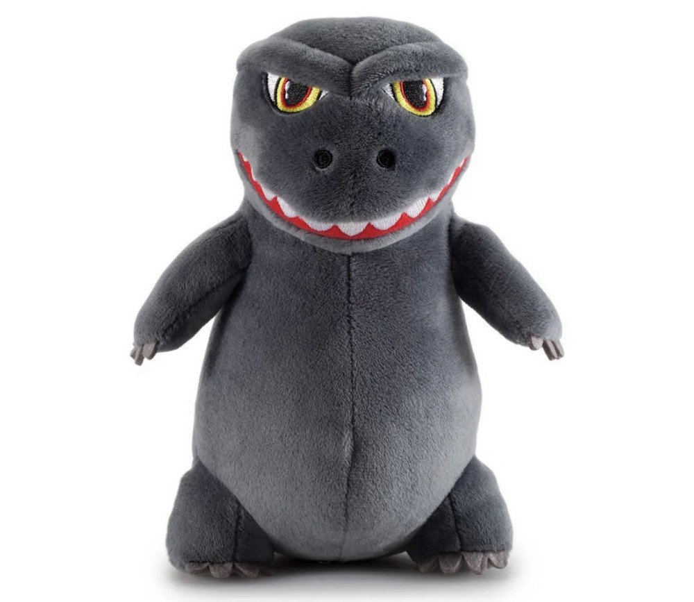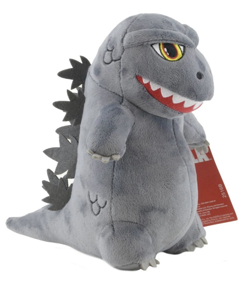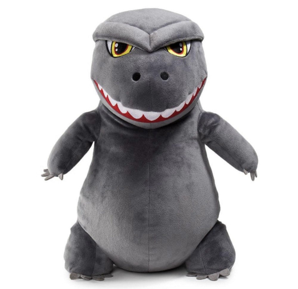 Adorable gray dinosaur plush toy with red and white details. Perfect for cuddling. Original price 59.00$ GODZILLA 16" HugMe Vibrating Plush by Kidrobot The king of the monsters and destroyer of cities, GODZILLA, is about to get super-sized and cuddly in plushie form! This Godzilla plush is going to destroy your heart with cuteness just in time for the Godzilla movie! Kidrobot has got you covered with not only our smaller Godzilla plush Phunny but we also have created an all-new line of cuddly plush creatures with shake action including this Godzilla HugMe Vibrating Plush! Each Godzilla HugMe stuffed animal plush comes super-sized, standing a whopping 16 inches tall and is made from super soft high-quality plush. Additionally, each HugMe plush comes with Kidrobot's signature vibrating unit with removable batteries for a shakeably soft hug when you need one. Get yours today before he disappears back into the depths of the ocean!* Shake action when you hug it! Shake action when you clap! *3 AA batteries come included