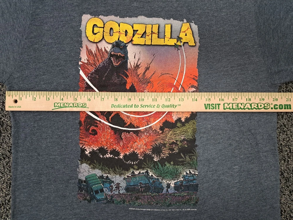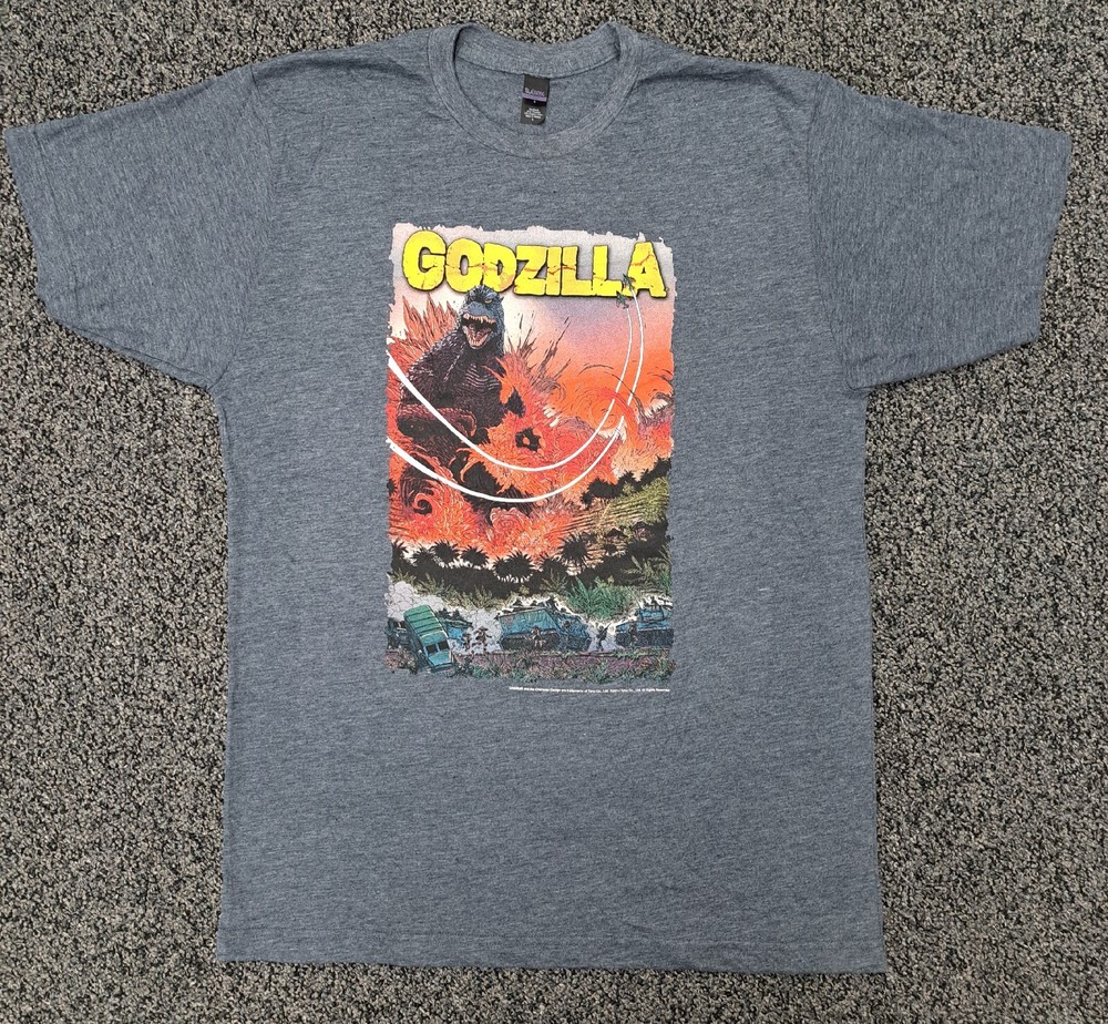 Brand New Never Worn Perfect Condition 2014 screen print on Heather Grey cotton polyester blend shirt Will ship in a polybag mailer and multiple orders will be shipped together Godzilla vs Army Comic Shirt New Size Large RARE colorful fire Japanese